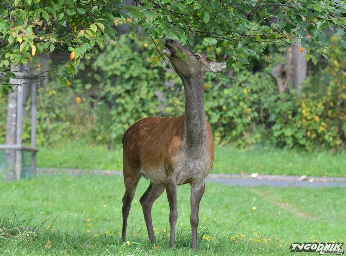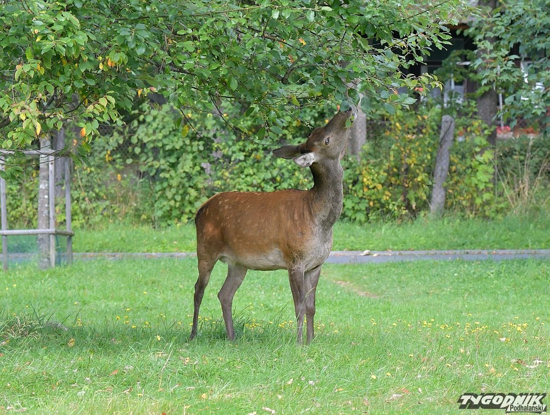 Dziś jedna z łani posilała się skubiąc drzewko na Równi Krupowej. Niestety, dokarmiając te zwierzęta, szczególnie zimą, przyzwyczailiśmy je do tego, że szukają pożywienia w mieście. Takie wizyty często kończą się dla dzikich zwierząt, które przestają bać się ludzi, bardzo źle.