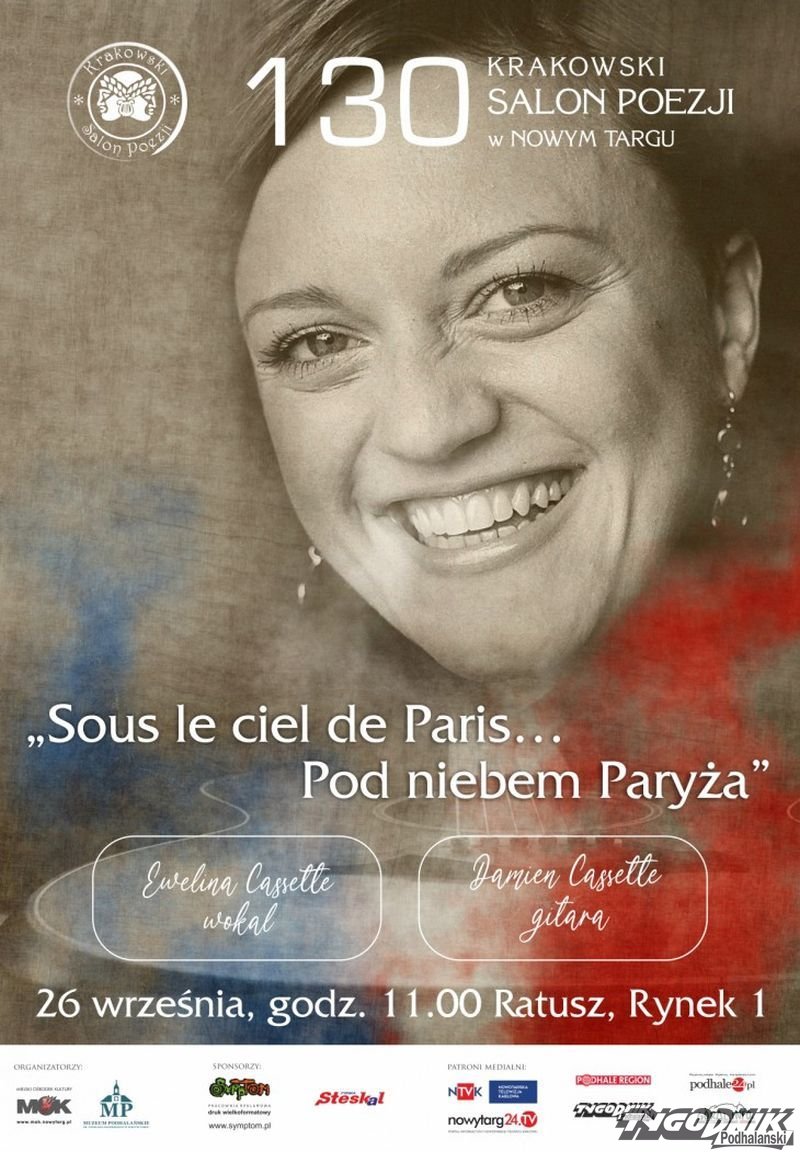 Z programem "Sous le ciel de Paris…Pod niebem Paryża" gośćmi Salonu Poezji będą: Ewelina Cassett/wokal i Damien Cassette/gitara.