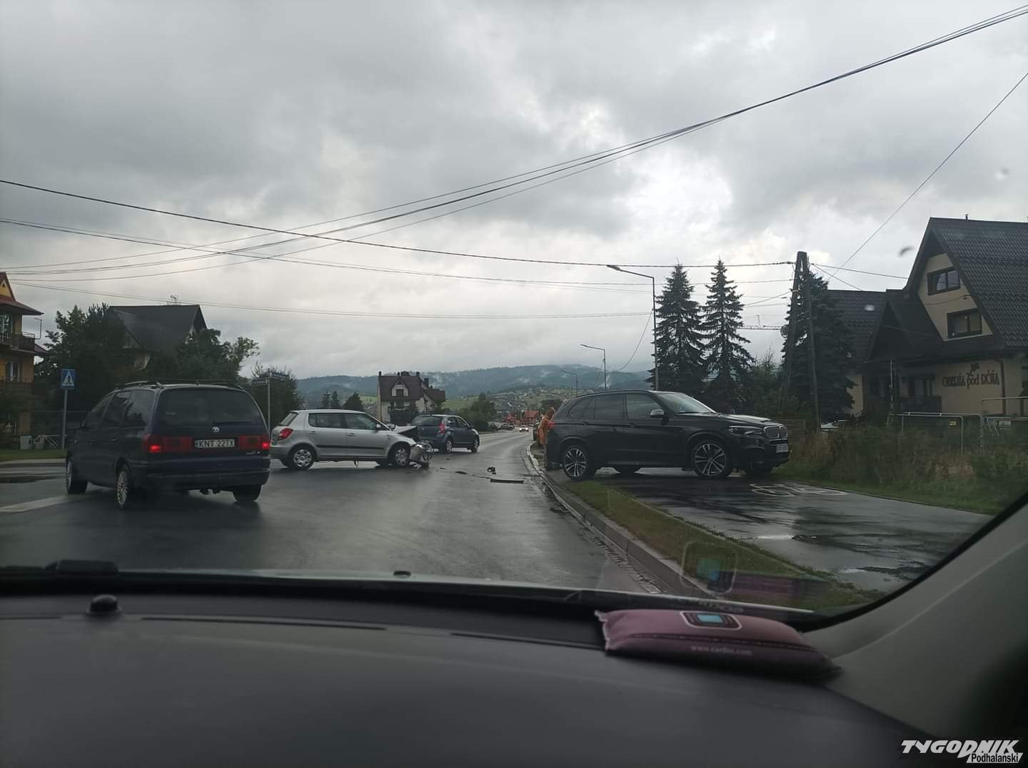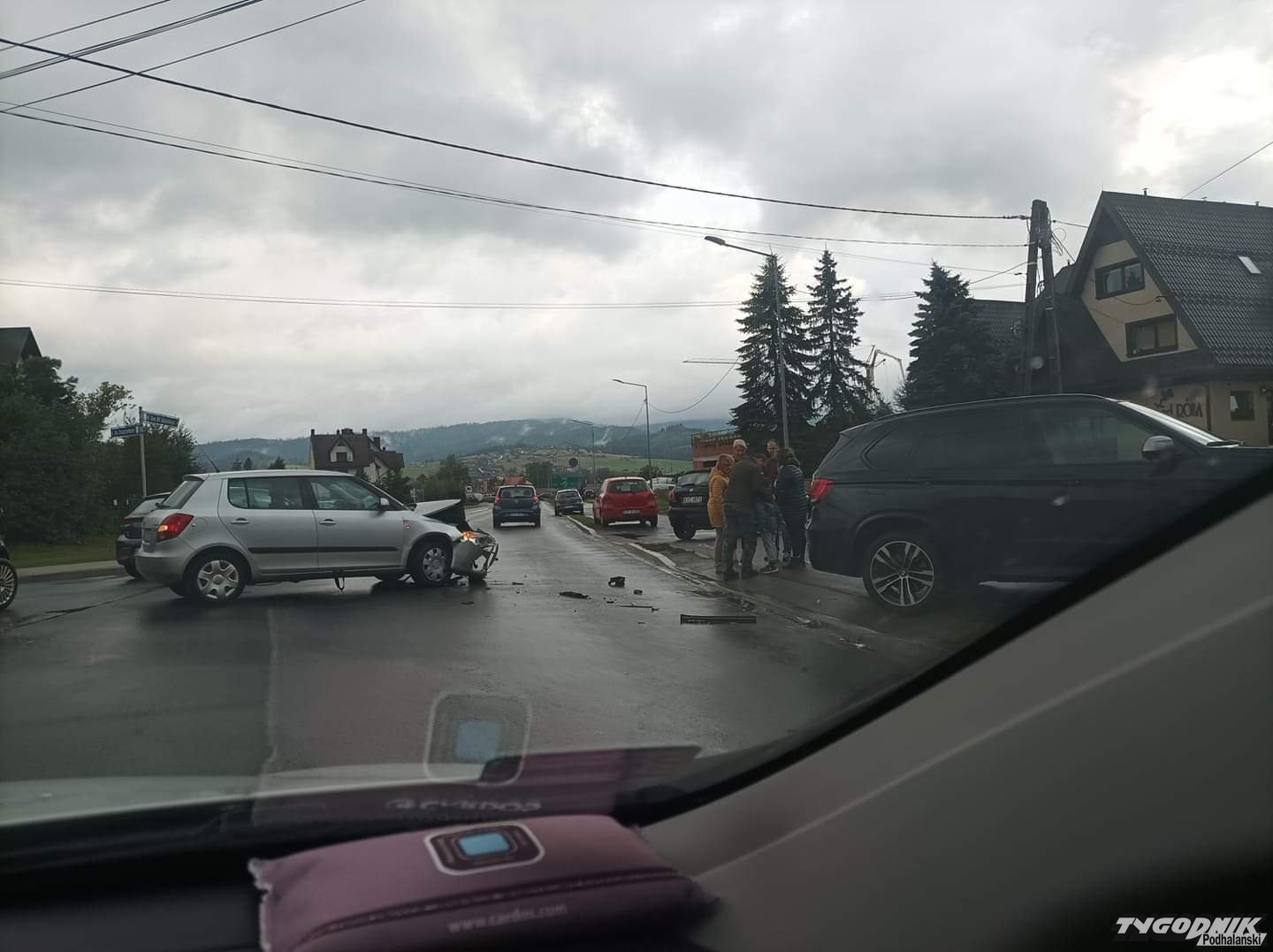 Zderzenie na ulicy Sikorskiego w Nowym Targu, na miejsce jadą służby ratunkowe.