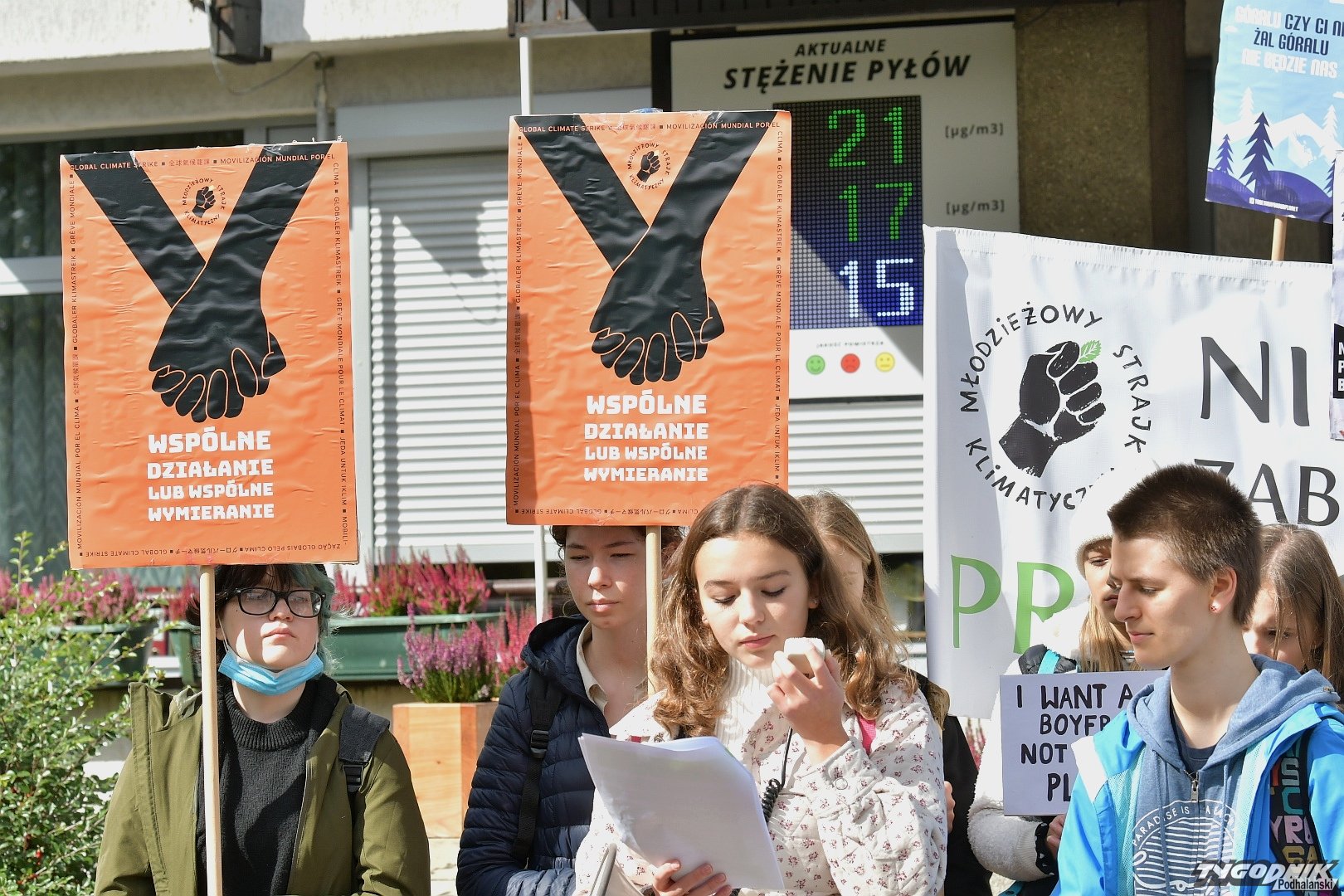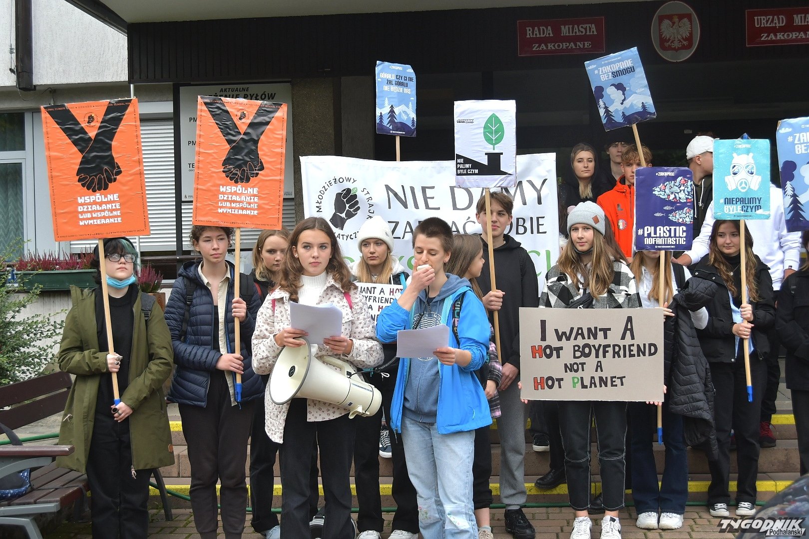 Protestujący przeszli sprzed Oczka wodnego na Krupówkach przed urząd miasta. Przedstawili dekalog swoich postulatów. Są wśród nich: wprowadzenie klimatycznego stanu wyjątkowego, tak aby problem zmian klimatu traktowany był poważnie, obowiązkowa segregacja śmieci, rozwój łąk kwietnych, zakaz sprzedaży foliowych toreb, wprowadzenie w Zakopanem stref wolnych od spalin czy zakaz palenia węglem i drewnem pod Giewontem.