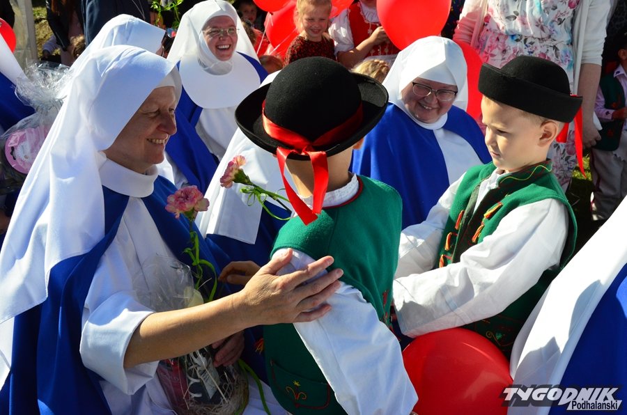 Nowo placówka nosi imię Mieczysławy Faryniak. Uroczystość odbyła się w niedzielę 3 października i zwieńczyła trwające 3 lata dzieło budowy nowego przedszkola.