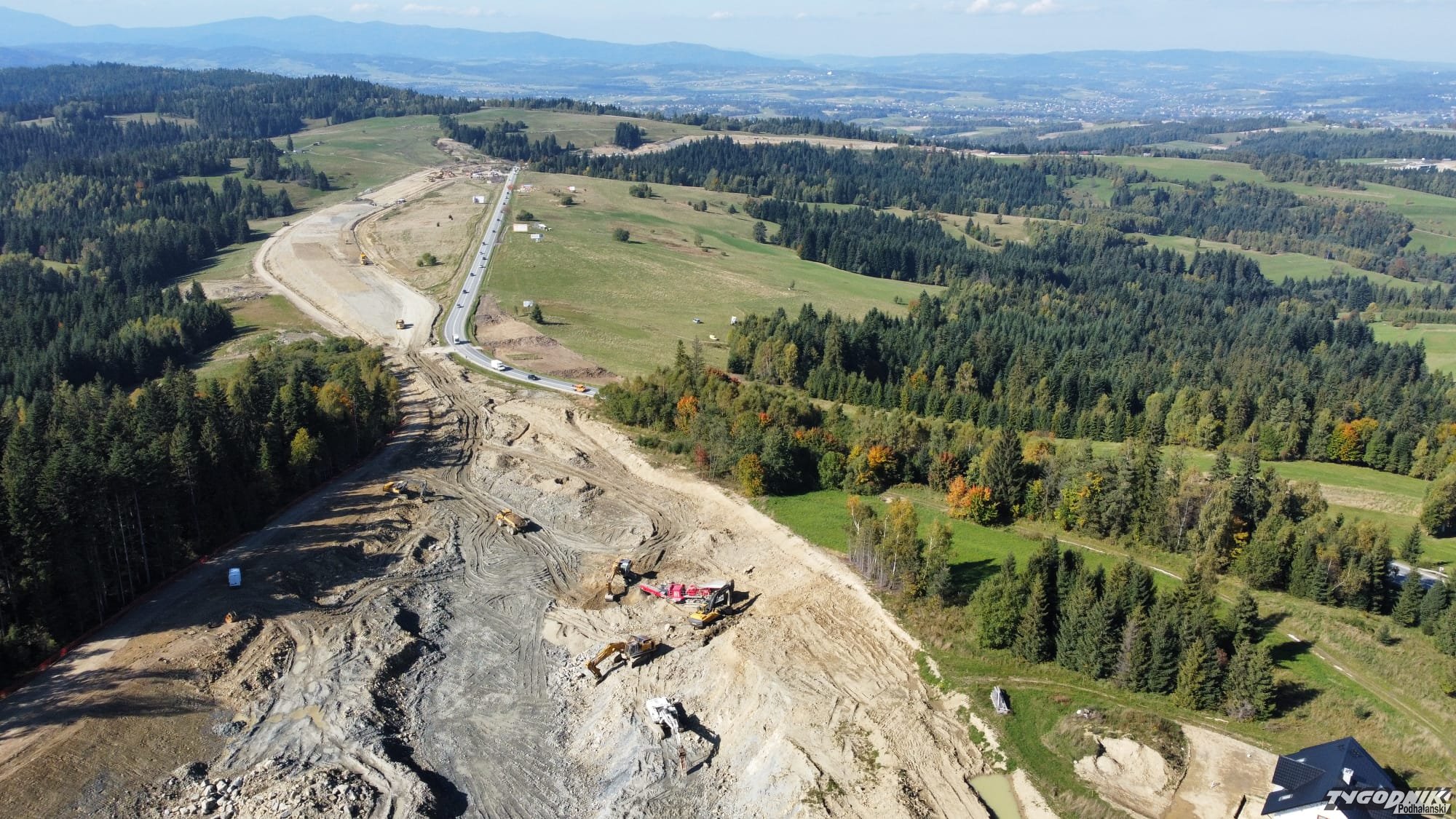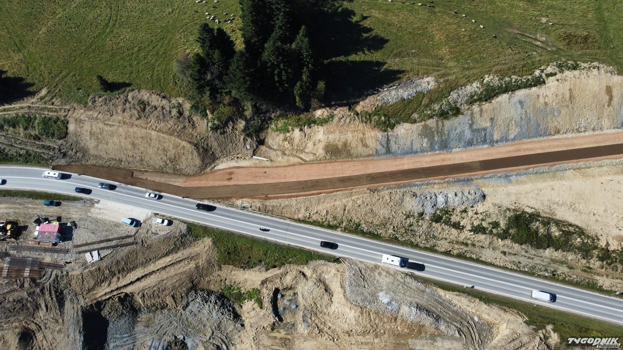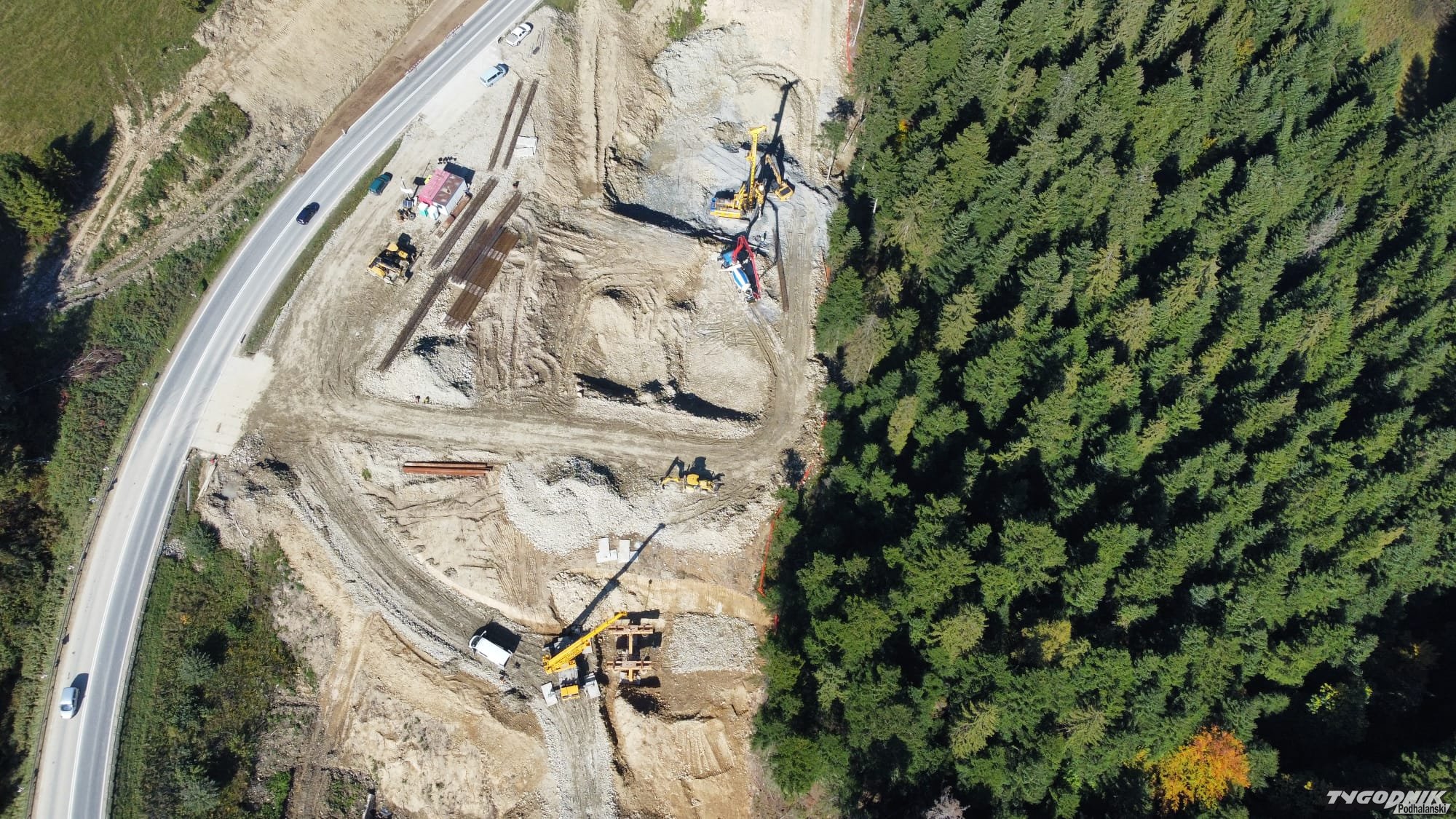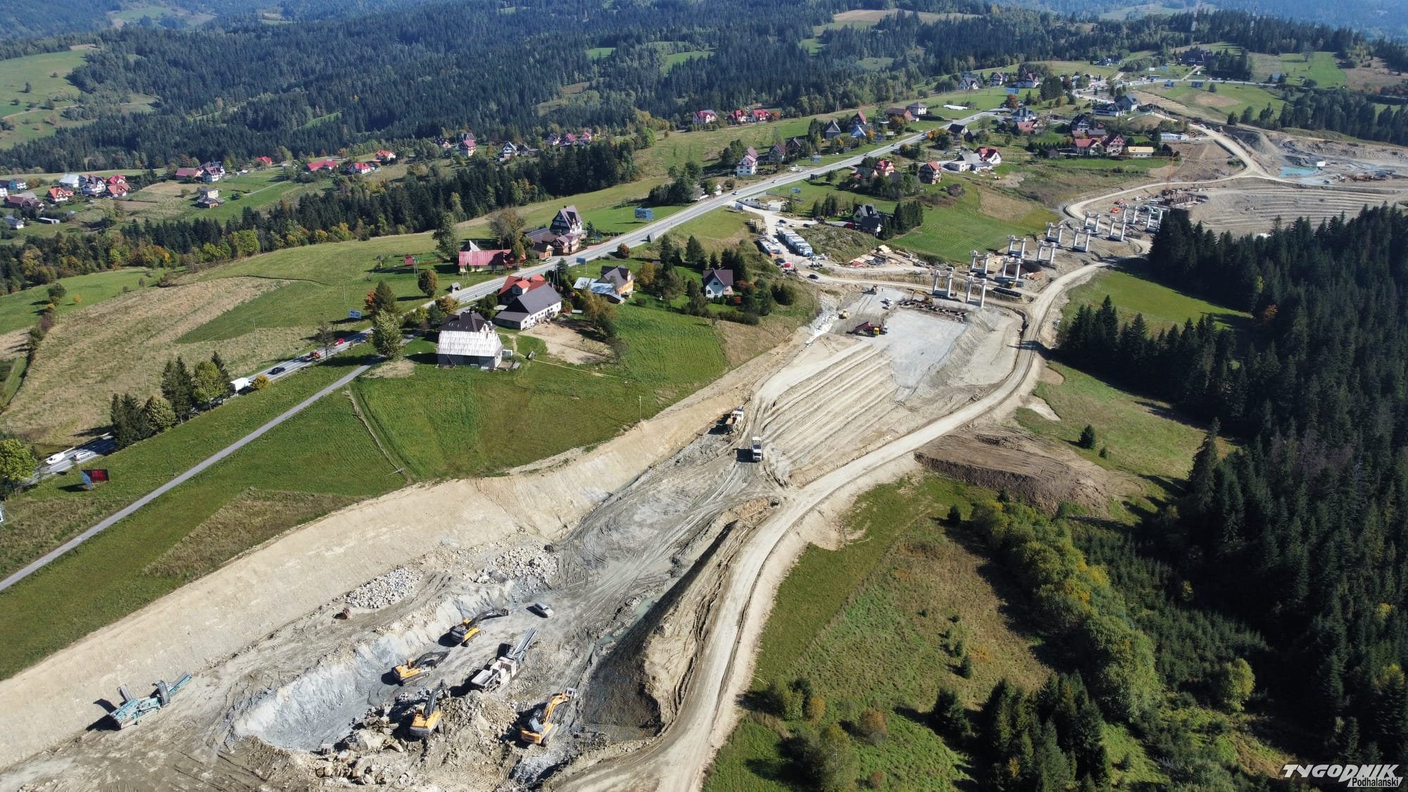 Tak z lotu ptaka wygląda budowa nowej zakopianki w okolicy Rdzawki.