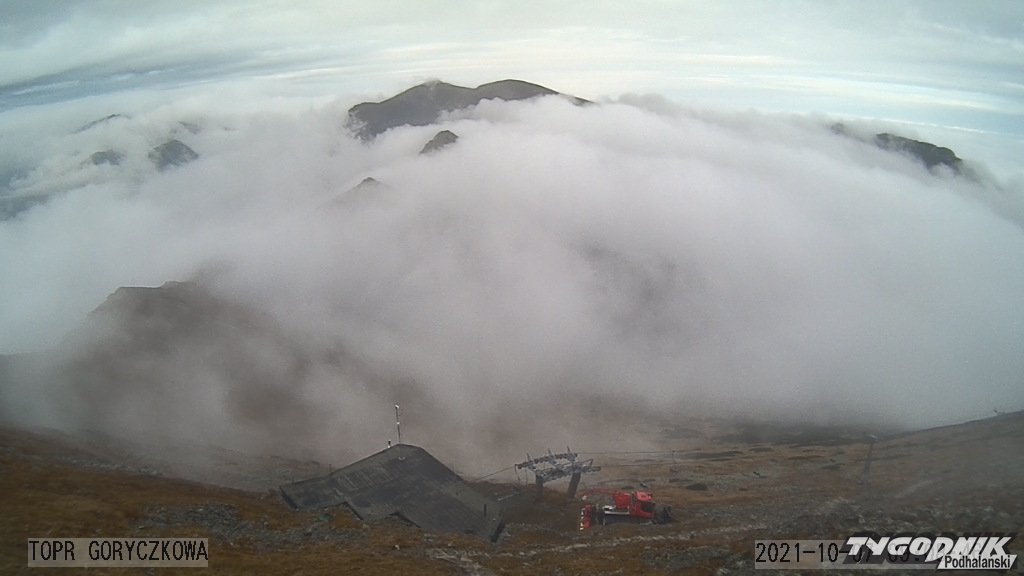Kolejka na Kasprowy kursuje, na górze termometry pokazują niewiele ponad 2 st. C. Tatrzańskie szczyty wystają ponad morze chmur, a tych chmur z każdą godziną powinno być coraz mniej. Prawdziwa poprawa pogody czeka nas od piątku. Do poniedziałku słońca na niebie nie zabraknie. Będzie jednak o wiele chłodniej niż jeszcze we wtorek. W nocy na Podhalu spodziewane są przymrozki.