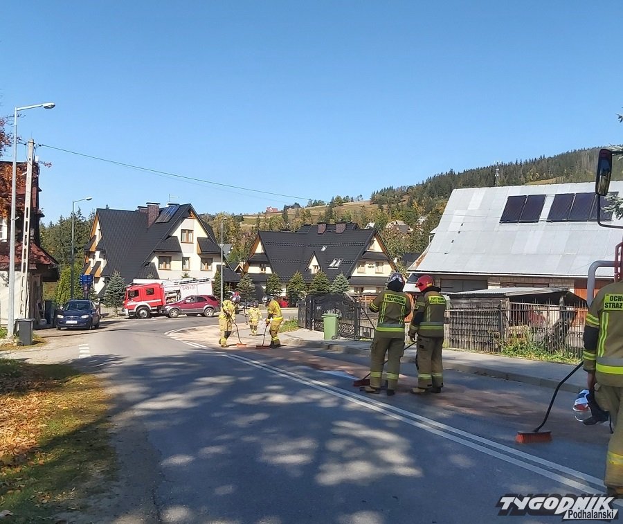 Strażacy z Kościeliska i Zakopanego usunęli długą na 500 metrów plamę z drogi.