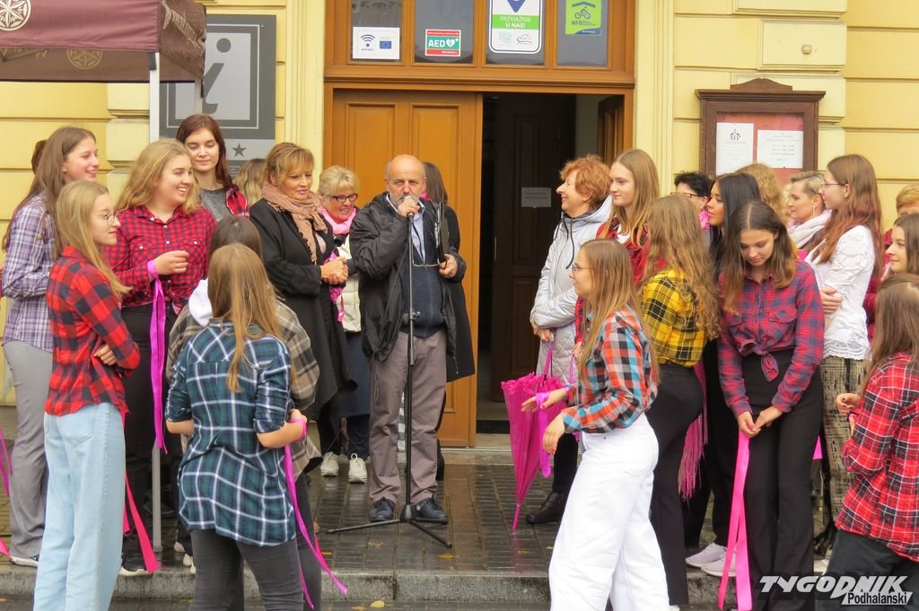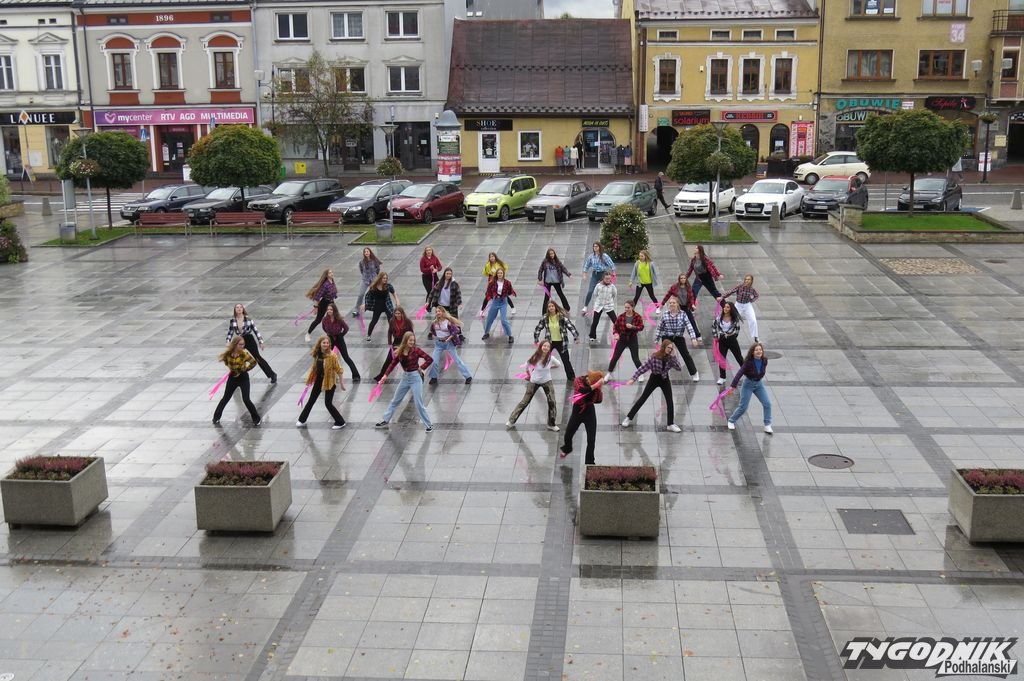 Na nowotarskim Rynku w profilaktykę badania piersi zaangażowały się uczennice z Zespołu Szkół Ekonomicznych w Nowym Targu - Kowańcu, które zatańczyły w rytmie utworu "Dancing Queen". Potem skandowały hasło przez siebie wymyślone: "Piersi zbadaj swe i tańcz całe dnie", które było skierowane do rówieśniczek, mam i babć uczennic. Licealistki wykonały także inne tańce, między którymi skandowały swoje hasło.