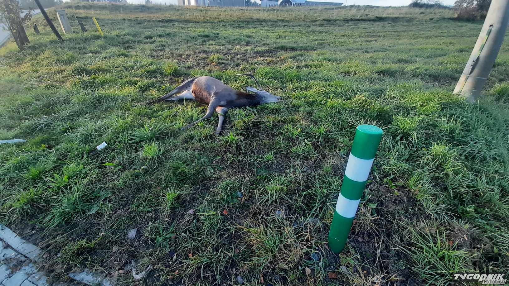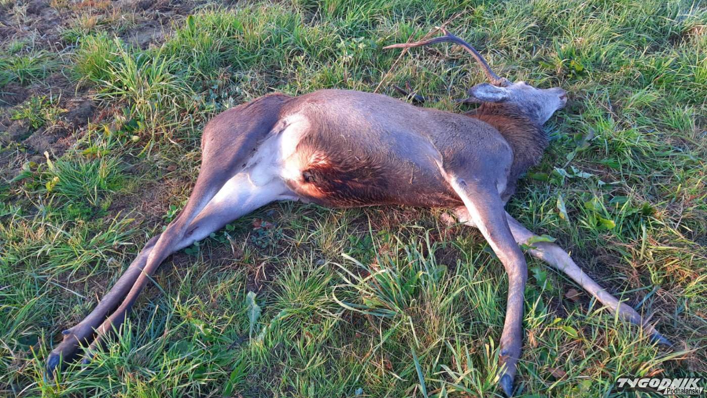 Młody byk jelenia nie przeżył konfrontacji z pojazdem.