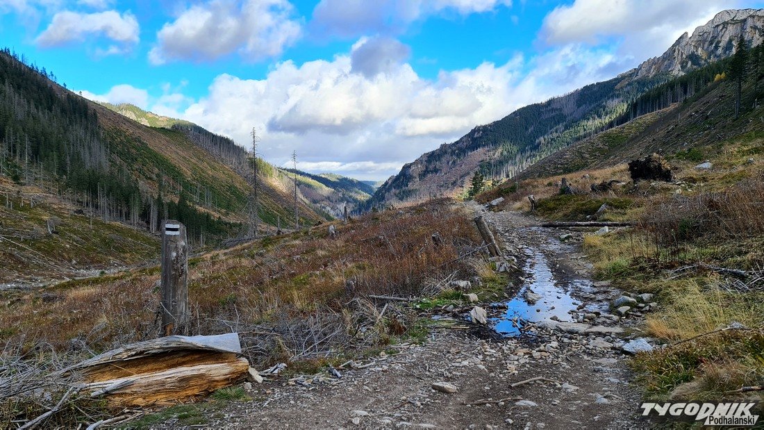 Dziś rano nad tatrzańskimi szczytami gromadziły się chmury, halny powoli się wyciszał, padał też drobny śnieg. Na szlakach w rejonie Doliny Chochołowskiej wielu turystów nie spotkaliśmy.
