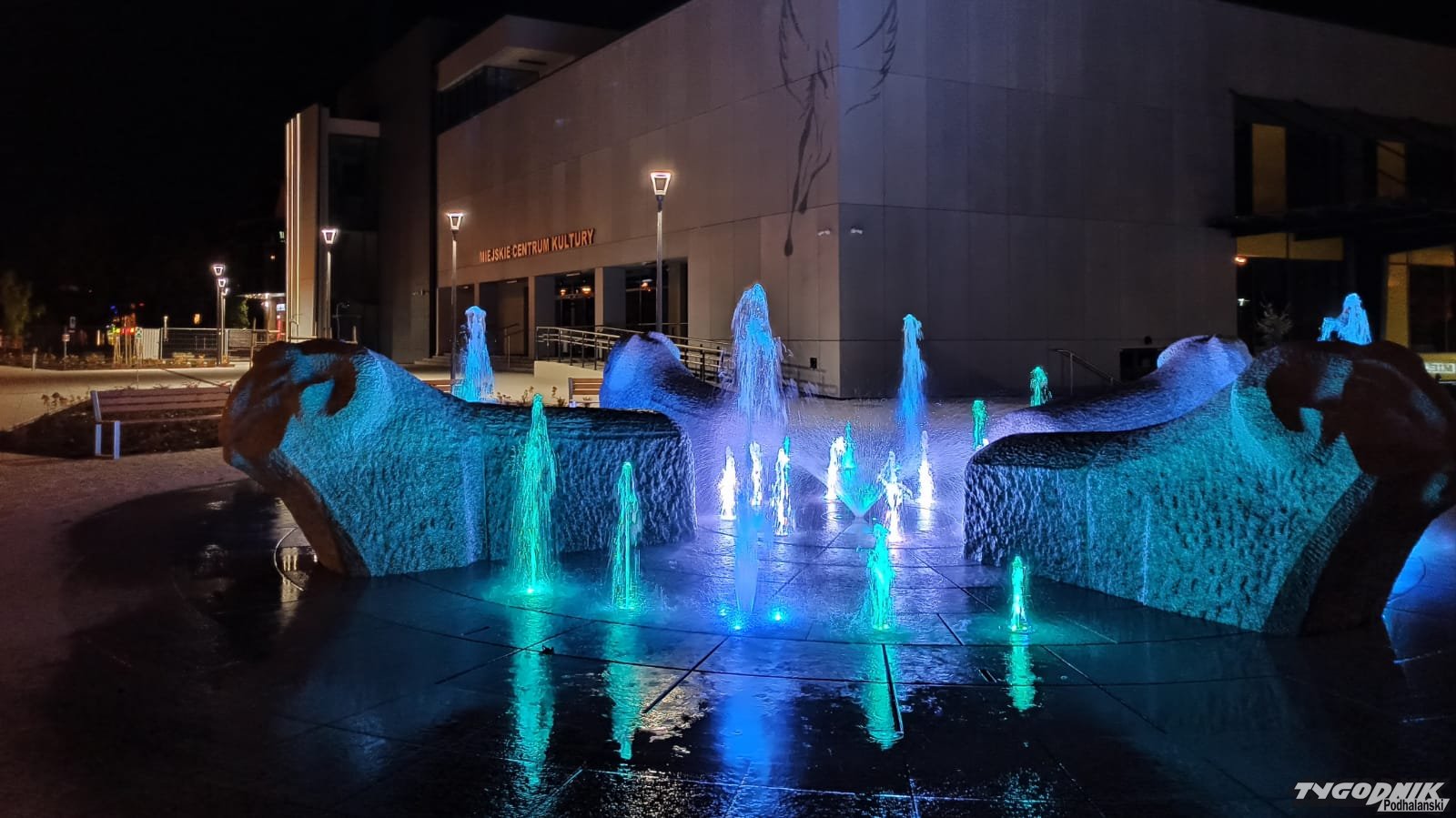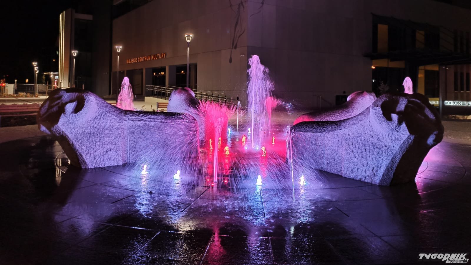 Atrakcja przed Miejskim Centrum Kultury zabłysła i wytrysnęła.