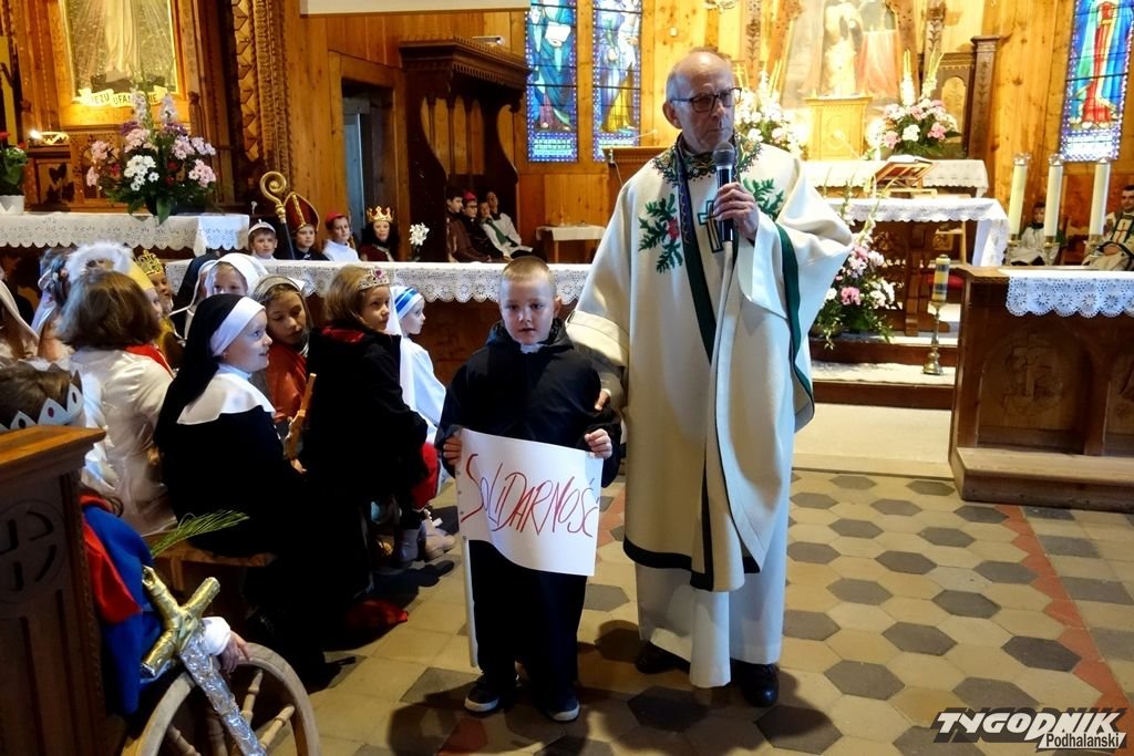 Korowód prowadził św. Kazimierz Królewicz - patron parafii. Dzieci - pytane przez księdza proboszcza - opowiadały najważniejsze informacje z życia wybranego przez siebie świętego.