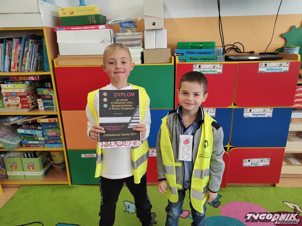 Uczniowie klas młodszych na zajęciach świetlicowych w formie zabawy także powtórzyli wiedzę o ruchu drogowym. Podzieleni na drużyny: Czerwonych Świateł, Żółtych Świateł, Zielonych Świateł, Rowerzystów i Kierowców rozwiązywali różne zadania: poprawnie przechodzili przez jezdnię, zakładali kamizelki odblaskowe na czas, składali znaki drogowe z puzzli, śpiewali piosenkę "Światła odblaskowe" oraz rozpoznawali poznane znaki drogowe.