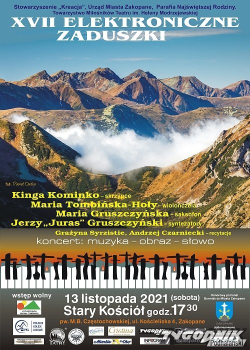 Już w najbliższą sobotę w Zakopanem odbędą się XVII Elektroniczne Zaduszki. Przed miłośnikami elektronicznych brzmień w Starym Kościele na Pęksowym Brzyzku wystąpią: Kinga Kominko - skrzypce, Maria Tombińska-Hoły - wiolonczela, Jerzy "Juras" Gruszczyński - syntezatory. Poezje recytować będzie Grażyna Syrziste i Andrzej Czarniecki.