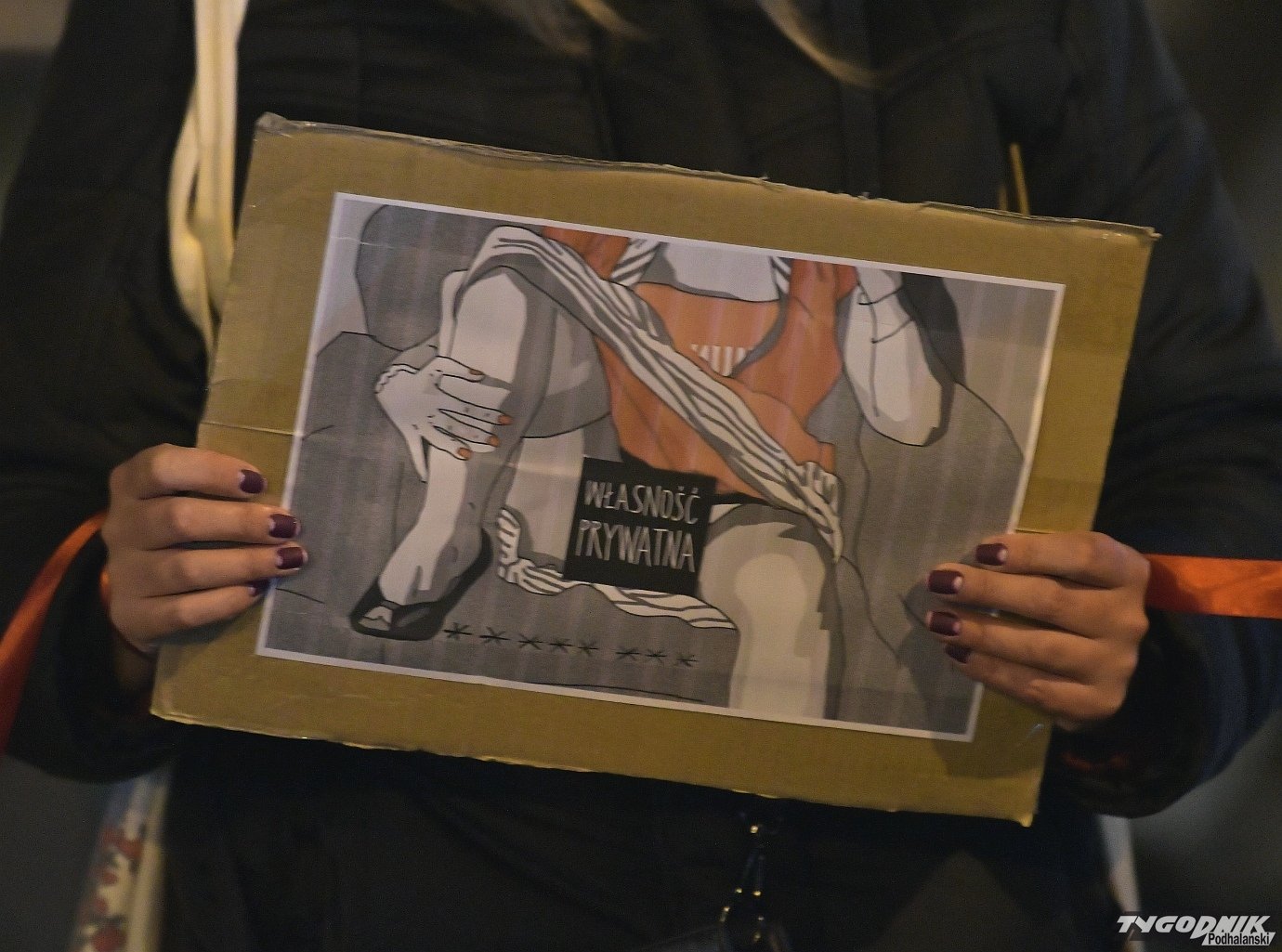 Obrazek z napisem "własność prywatna" - własność do momentu poczęcia nowego CZŁOWIEKA, a to już niczyja własność, to nowe życie.