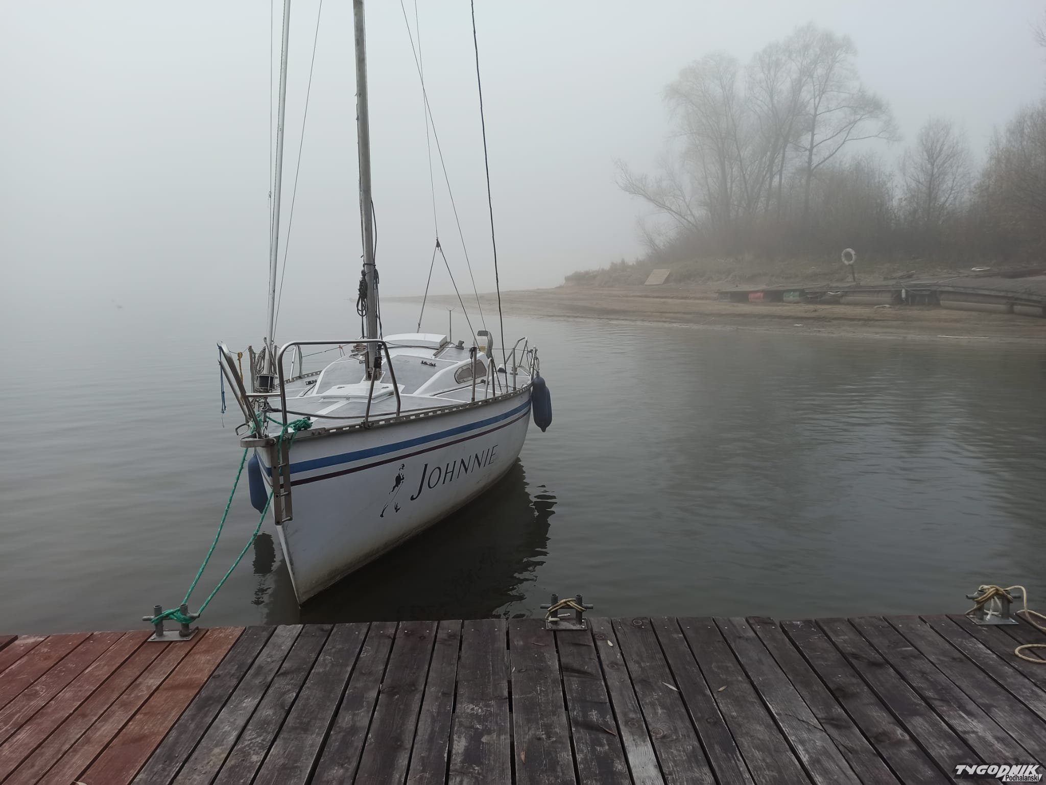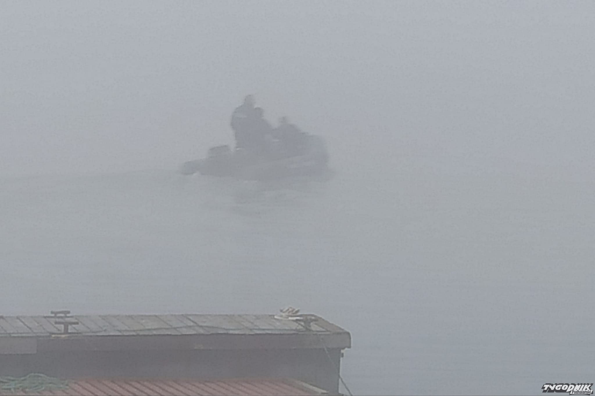 Od rana Jezioro Czorsztyńskie spowite jest gęstą mgłą.