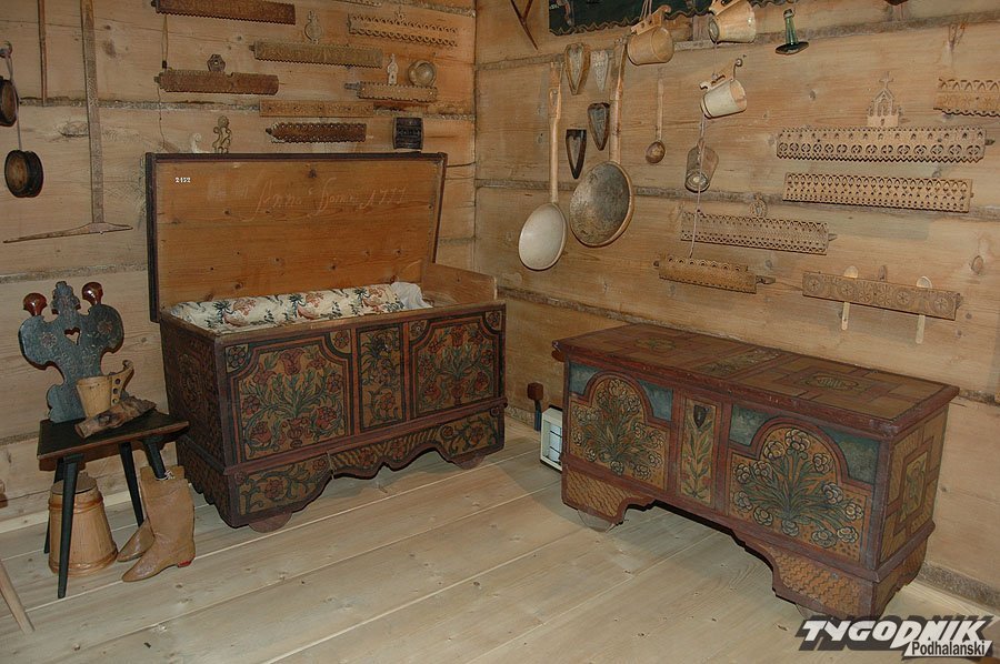 Dzięki metryczkom wiadomo, kto był twórcą drewnianych przedmiotów. Kilkakrotnie pojawia się nazwisko Klusia Hareńskiego, a także Wojciecha Kułacha Wawrzyńcoka z Gliczarowa, „lubownika baroku”, jak go nazywał Andrzej Skupień Florek. – Mamy wykonany przez niego stołek, łyżnik. Wszystko zdobione w stylu góralskiego baroku – wyjaśnia Anna Kozak.