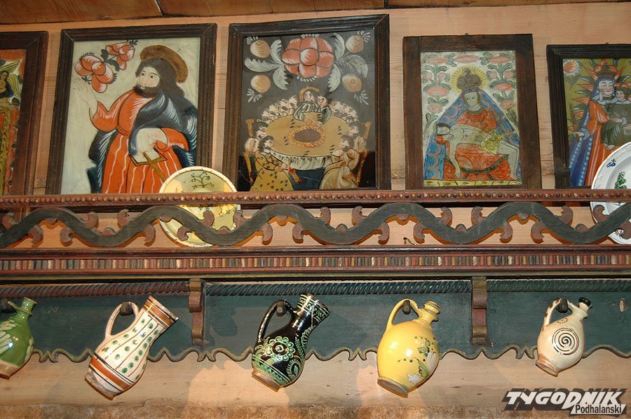 Niegdyś drewniane listwy pod powałą wypełnione były obrazkami na szkle o tematyce religijnej, czasem zbójnickiej. – Dembowscy widzieli nad potokami potłuczone obrazki na szkle. Maria zbierała fragmenty zamalowanego szkła i niektóre składała w całość. Do dziś w obrazkach z ich kolekcji widać, że przeszły niejedno. Są mocno potłuczone. W sumie jest w ich zbiorze niewiele – twierdzi kustosz. Jeden z zachowanych obrazków o tematyce zbójnickiej pośrednio związany jest z Janem Krzeptowskim Sabałą. Pochodzi ze Słowacji. Na jego odwrocie zostały zanotowane nazwiska przedstawionych na nim zbójników. Pisała je Maria Dembowska pod dyktando Homera Tatr.