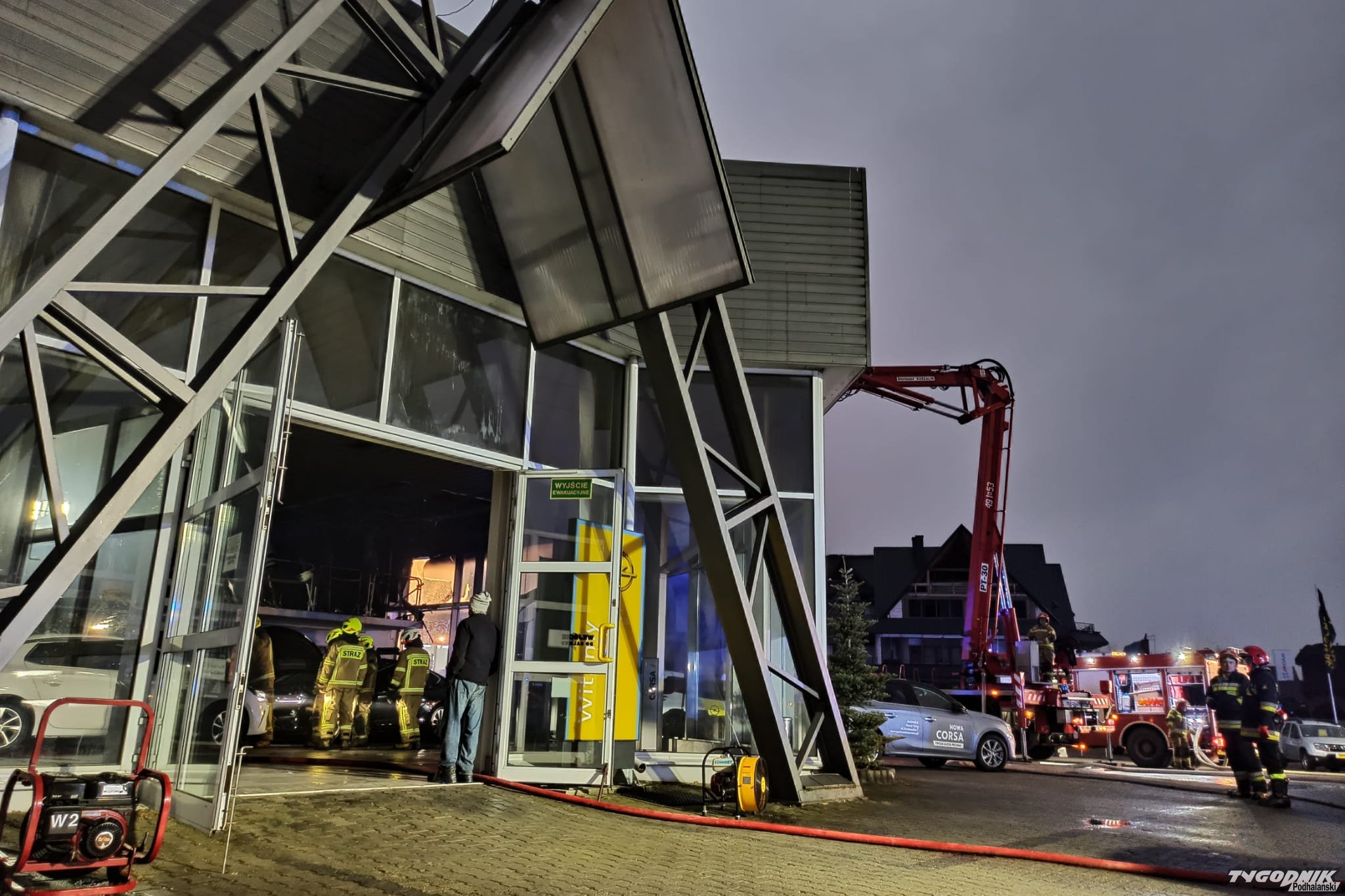 Pożar w salonie samochodowym w Nowym Targu (WIDEO) (ZDJECIA)