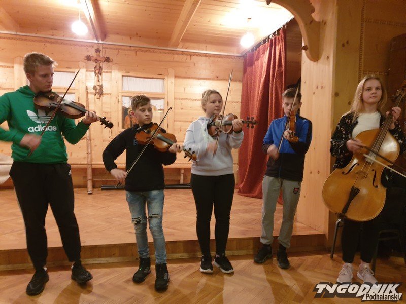 Grają tradycyjne melodie góralskie.