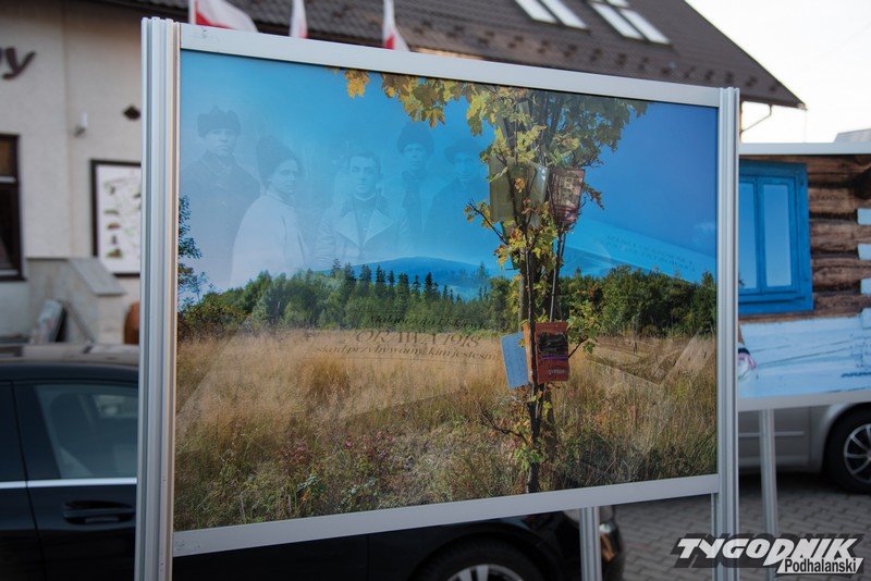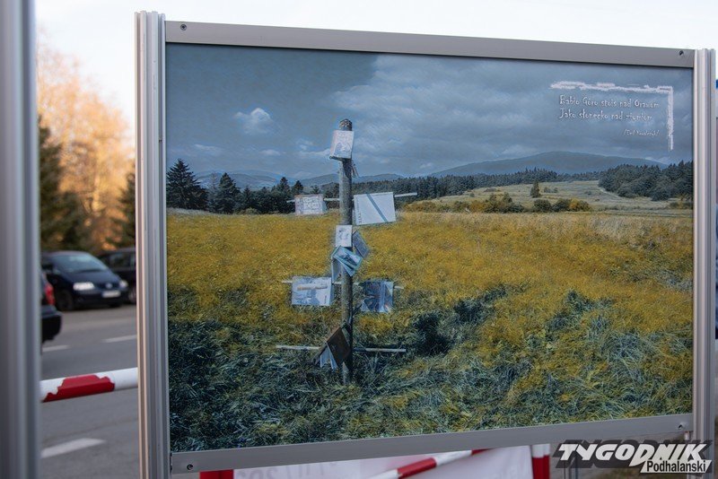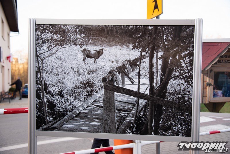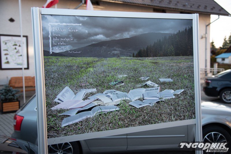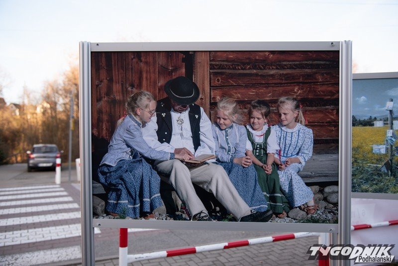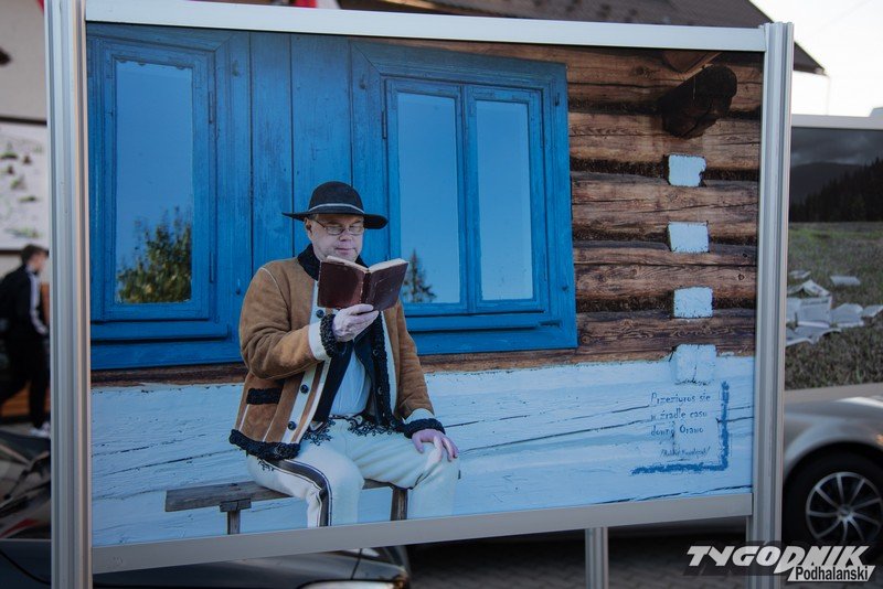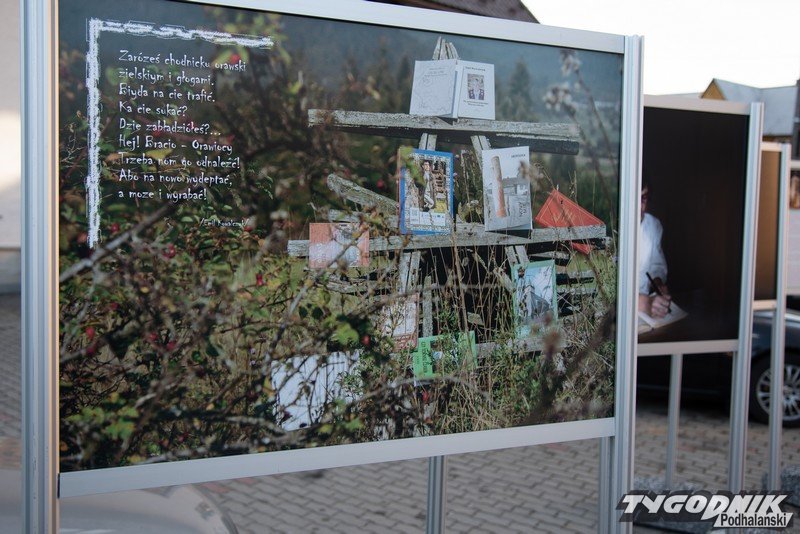 Przed Domem Ludowym w Lipnicy Wielkiej plenerowa wystawa fotografii Grzegorza Rzepiszczaka.