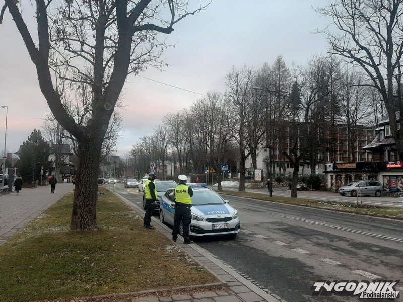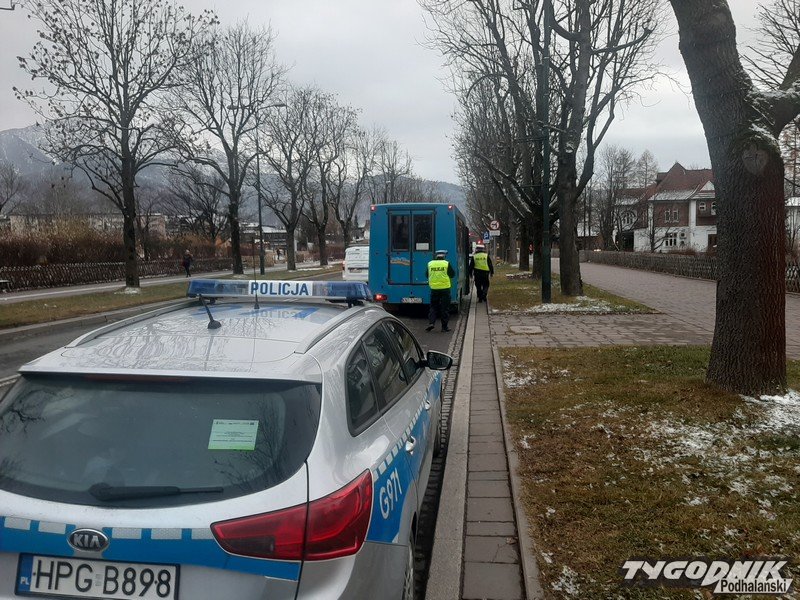 Dziś od rana policjanci w Zakopanem zatrzymują samochody pasażerskie na ulicy Kościuszki.