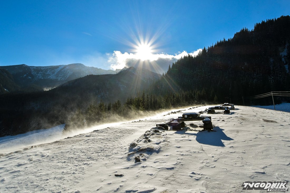W Tatrach coraz silniej wieje. Nad górami zbierają się chmury. Wiatr na Kasprowym Wierchu w porywach dochodzi do 90 km na godz., termometry wskazują tam - 5 st. C., w Zakopanem +4. Jak na wiatr halny, wichura nie jest mocna, ale przyniesie zmianę pogody. W piątek w Tatrach będzie padać śnieg, a na Podhalu deszcz. W sobotę jest szansa na przejaśnienia, a od poniedziałku zimowo ma się zrobić nie tylko w górach, ale także na Podhalu.