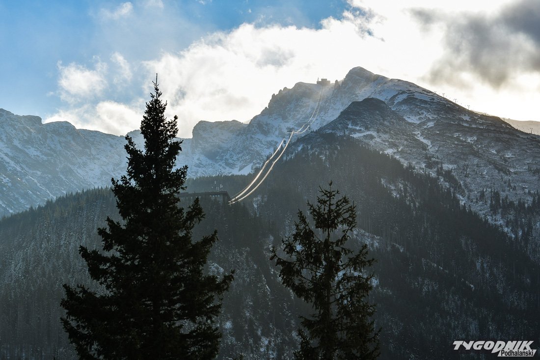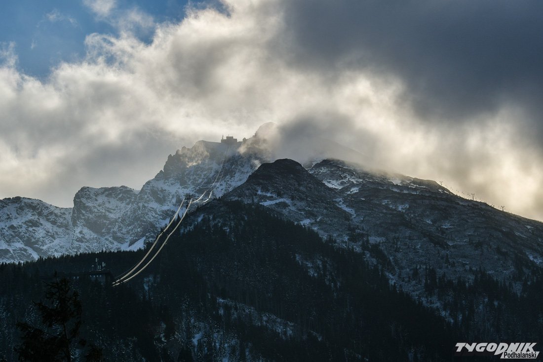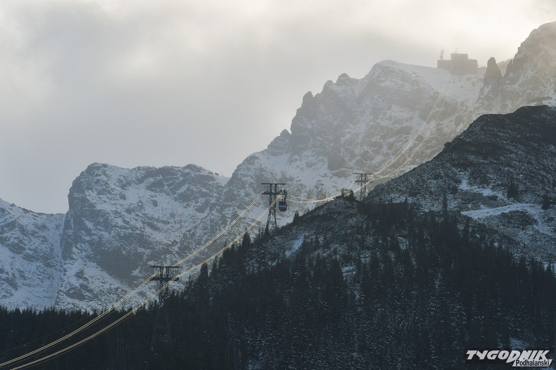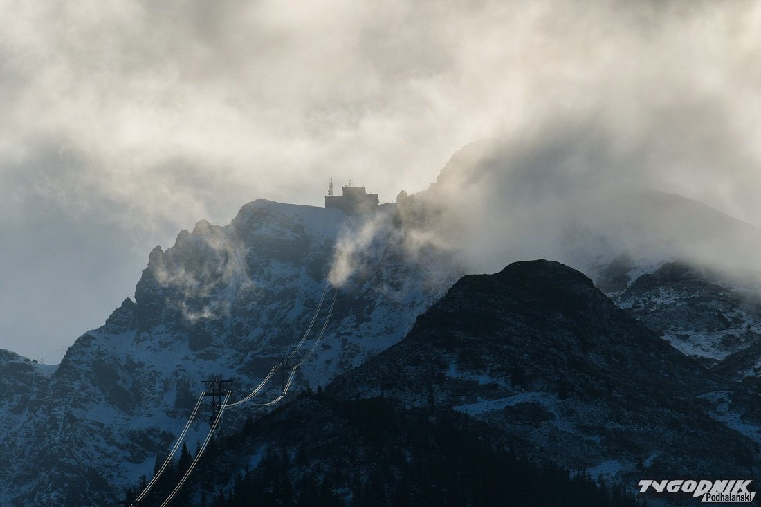 Południowy wiatr zatrzymał kolejkę linową na Kasprowy Wierch.
