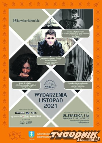 W zakopiańskiej kawiarni Kmicic w Zakopanem w piątek, 26 listopada nie odbędzie się wieczór muzyczny z Jakubem Hubickim. Artysta zagra w innym terminie.
