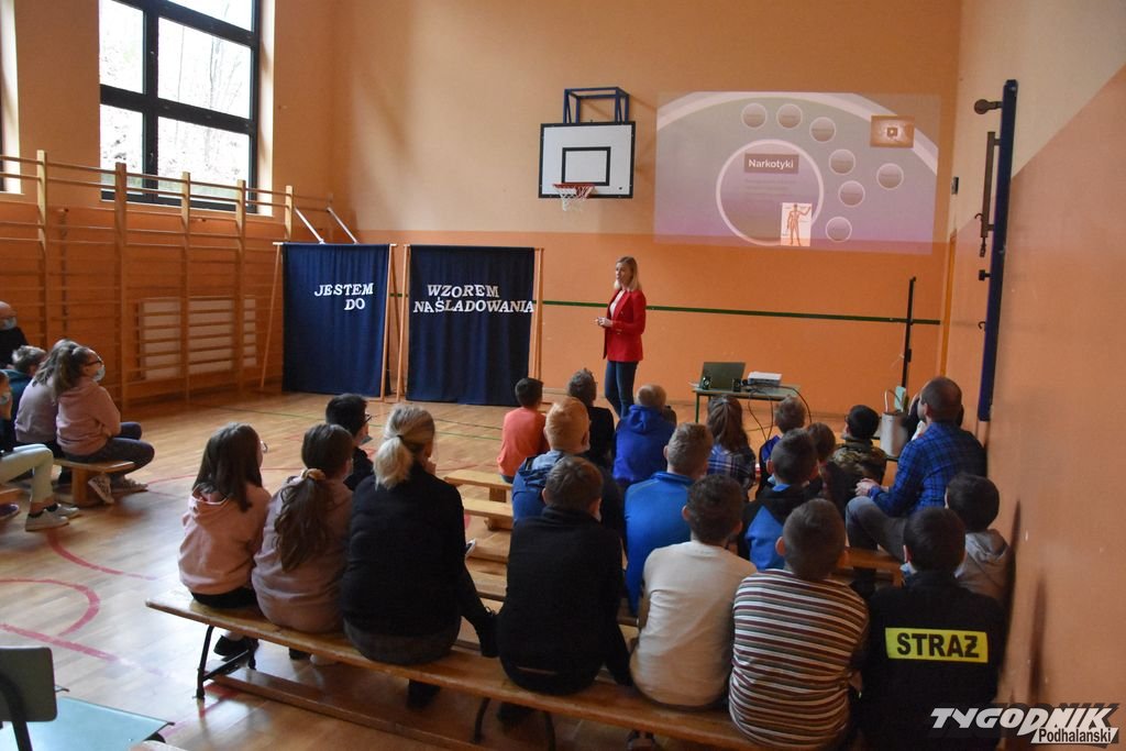 Po powitaniu i krótkich wystąpieniach przyszedł czas na zajęcia z panią psycholog Klaudią Wójcik. Poprowadziła ona wykład dotyczący konsekwencji stosowania środków psychoaktywnych i alkoholu, natomiast strażacy z OSP Ratułów Dolny i OSP Ratułów Górny zapoznali dzieci ze sprzętem strażackim i opowiedzieli o służbie w Ochotniczej Straży Pożarnej. Z uczniami spotkał się też aspirant Grzegorz Marek z Komendy Policji w Czarnym Dunajcu.