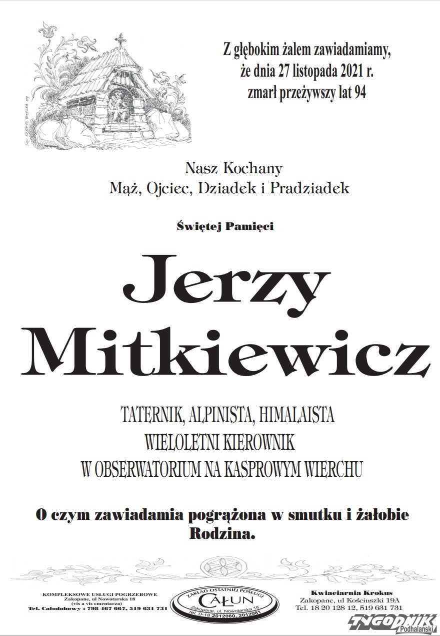 W wieku 94 lat odszedł dziś Jerzy Mitkiewicz, taternik, himalaista, meteorolog.