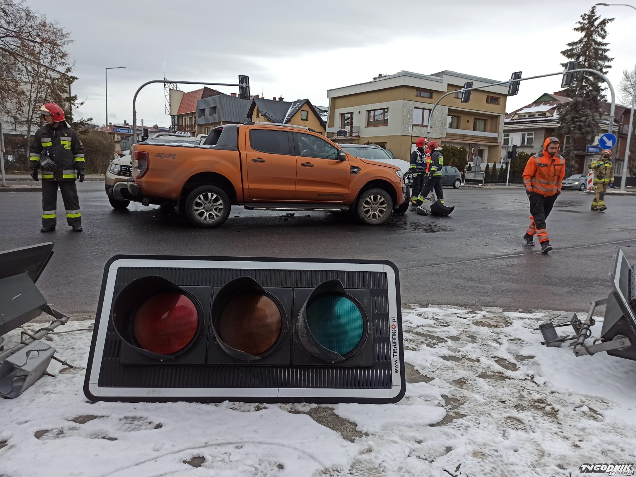 Dziś od rana na tym jednym z najruchliwszych nowotarskich skrzyżowań trwają prace przy wymianie sygnalizacji świetlnej. Właśnie przy niedziałających światłach doszło do poważnej kolizji. Na miejscu pracują strażacy i policjanci a także ekipy montujące oświetlenie. Na szczęście nikt w zderzeniu nie ucierpiał.