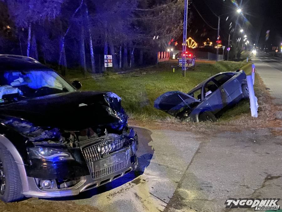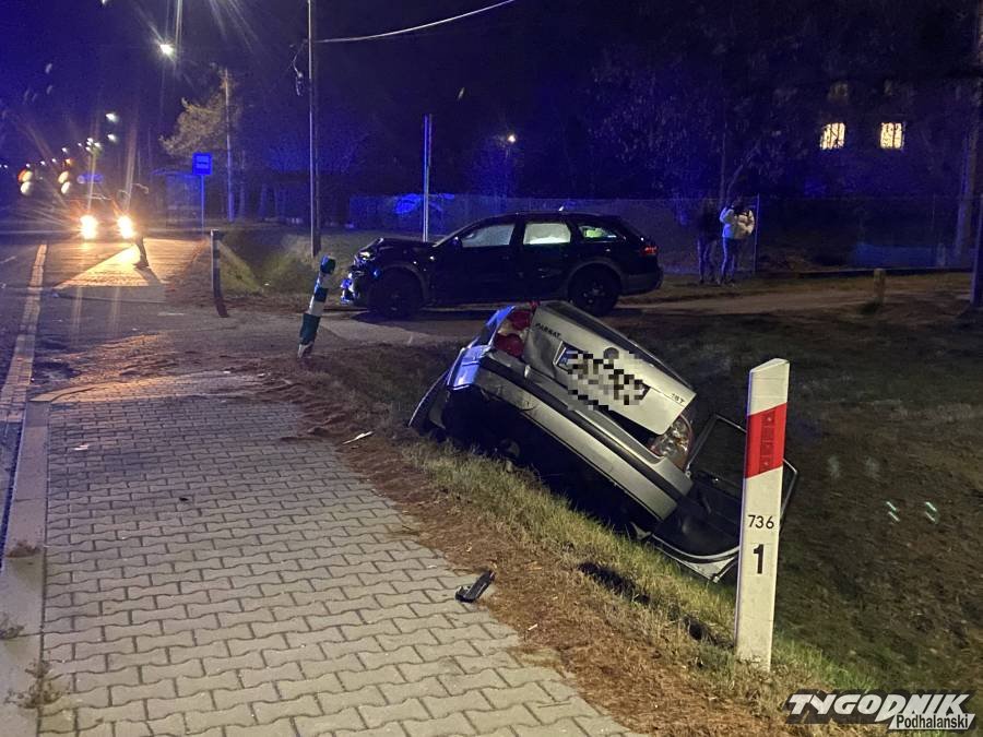 W Spytkowicach zderzyły się dwa auta osobowe, jedno wylądowało w głębokim rowie.