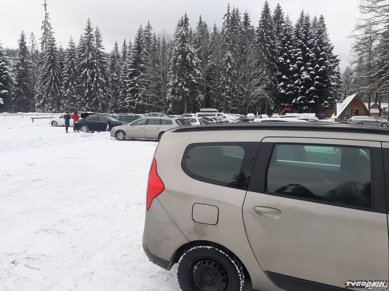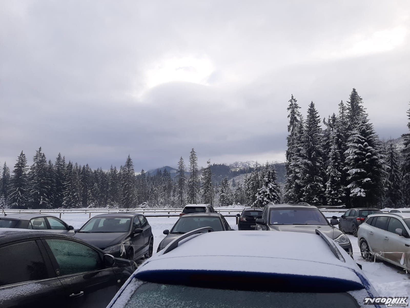 Popularny parking u wylotu Doliny Chochołowskiej powoli się zapełnia.