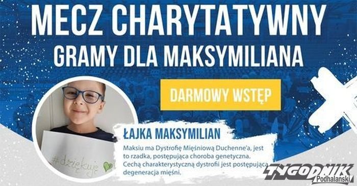 Już dziś (6.12) w Miejskiej Hali Lodowej w Nowym Targu mecz charytatywny dla Maksymiliana. Początek - godzina 19.