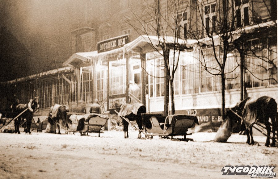 Do dziś przy Krupówkach stoi murowany gmach, który niegdyś był jednym z najznamienitszych hoteli zakopiańskich z restauracją i salą teatralno-balową. Jego historia sięga końca XIX stulecia. W 1893 roku Władysław Dzikiewicz wybudował hotel „Morskie Oko”. Postawił go na miejscu spalonej 4 lata wcześniej „Jadwinówki”, w której mieściła się pracownia Stanisława Witkiewicza. Był to okazały budynek drewniany, który spłonął w 1889 roku - przy okazji wielkiego pożaru środkowych Krupówek. Władysława Dzikiewicza wraz z Józefem Rysiem, właścicielem sąsiedniego budynku, oskarżono o umyślne podpalenie w celu uzyskania wysokiego odszkodowania. Uniewinnił ich trybunał w Nowym Sączu. Rok później Władysław Dzikiewicz za wysoką sumę z ubezpieczenia zaczął odbudowywać hotel. W 2-piętrowym, murowanym już obiekcie znajdowało się 60 pokoi, a na parterze cukiernia i restauracja z obszerną werandą. Wówczas był to największy budynek w Zakopanem, a zarazem pierwszy murowany obiekt w centrum. Do wybuchu I wojny światowej był to najbardziej ekskluzywny hotel w Zakopanem. Odbudowany hotel został otwarty 15 lipca 1901 roku. Uroczystość była podniosła. Odbyła się przy huku moździerzowych wystrzałów. Na werandzie grała orkiestra krakowskiego Towarzystwa Muzycznego „Harmonia”. „Otworzył swe podwoje pierwszy w Zakopanem po europejsku urządzony hotel” - donosił Przegląd Zakopiański. Ferdynand Hoesick w liście z 1908 roku „Zakopane - Europa” pisał: „Wyróżnia się duży dwupiętrowy hotel „Morskie Oko” z olbrzymią oszkloną werandą na wysokim podmurowaniu, jakby na tarasie”. I dodaje: „Skoro mowa o werandzie hotelu „Morskie Oko”, to należy oddać sprawiedliwość panu Dzikiewiczowi, że kawiarnię i restaurację urządził całkiem po europejsku, że je prowadzi wzorowo pod każdym względem, przy czym największy nacisk kładzie na czystość, co mu się chwali podwójnie. A co już budzi podziw po prostu, że garsoni są ubrani bez zarzutu, jak w pierwszorzędnych kawiarniach wiedeńskich, a usługa nic nie pozostawia do życzenia. Słowem Europa!”.