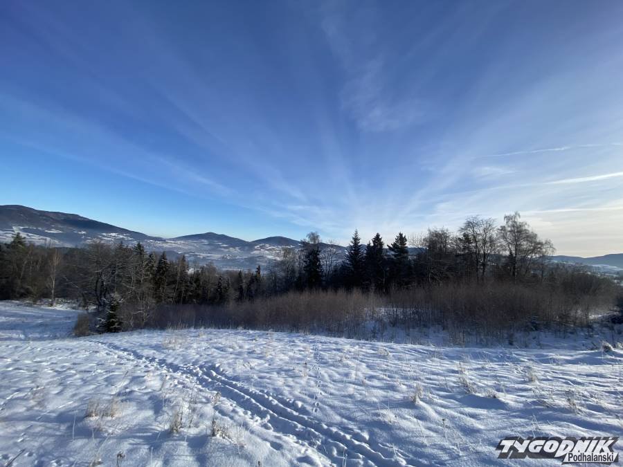 W Beskidach na dobre zagościła zima. Na szlakach, szczególnie tych wyżej położonych zalega ponad dwudziestocentymetrowa warstwa śniegu. Miejscami szlaki są oblodzone, jednak na głównych traktach panują dobre warunki. Życie turystom może utrudniać dość niska temperatura, spadająca kilkanaście stopni poniżej zera. Te niedogodności rekompensują w pełni wspaniałe widoki z górskich szczytów i grzbietów. A takie widoki można dziś było podziwiać ze stoków Lubonia Wielkiego w Beskidzie Wyspowym.