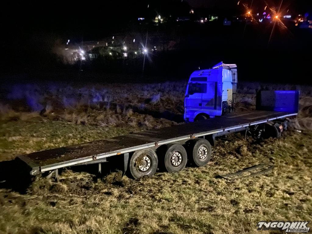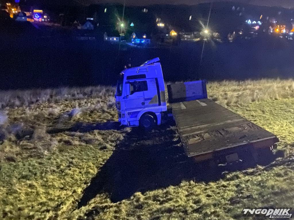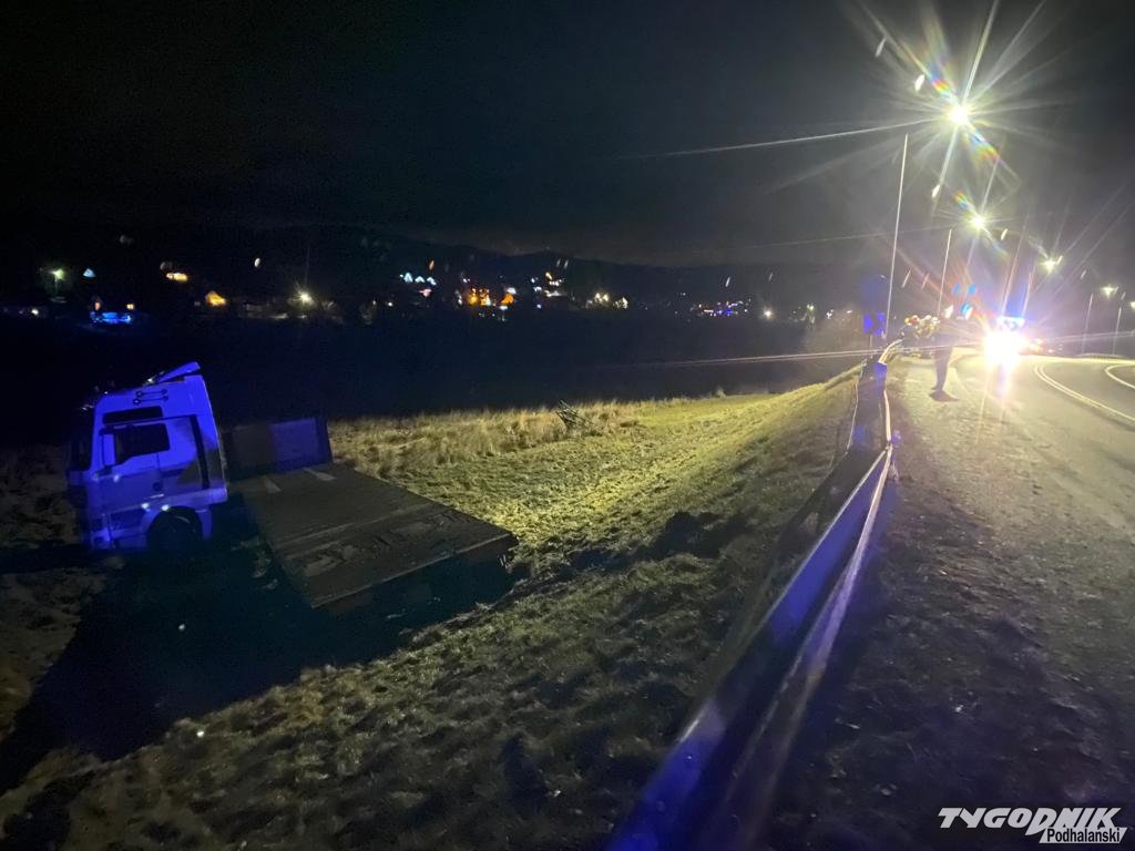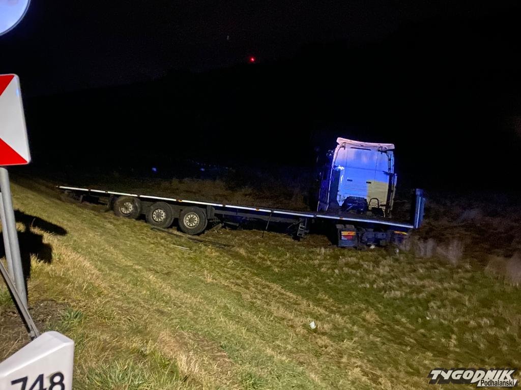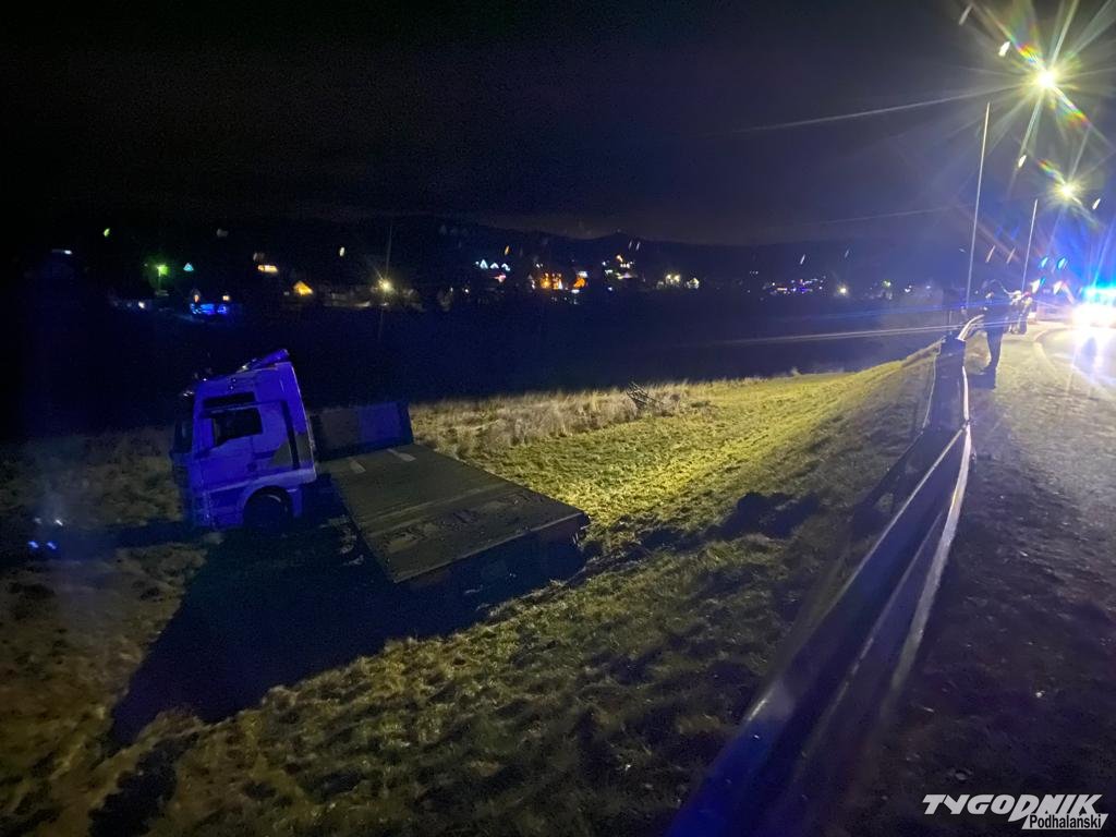 Wypadek zdarzył się przed 22 na chyżniance, przy granicy Podwilka i Orawki. Ciężarówka przebiła bariery energochłonne i zsunęła się z kilkumetrowej skarpy. Na szczęście nikt w wypadku nie odniósł poważniejszych obrażeń. Uszkodzony samochód jest poza drogą, ruch odbywa się normalnie. Na miejscu pracują strażacy z rabczańskiej JRG i OSP Podwilk.