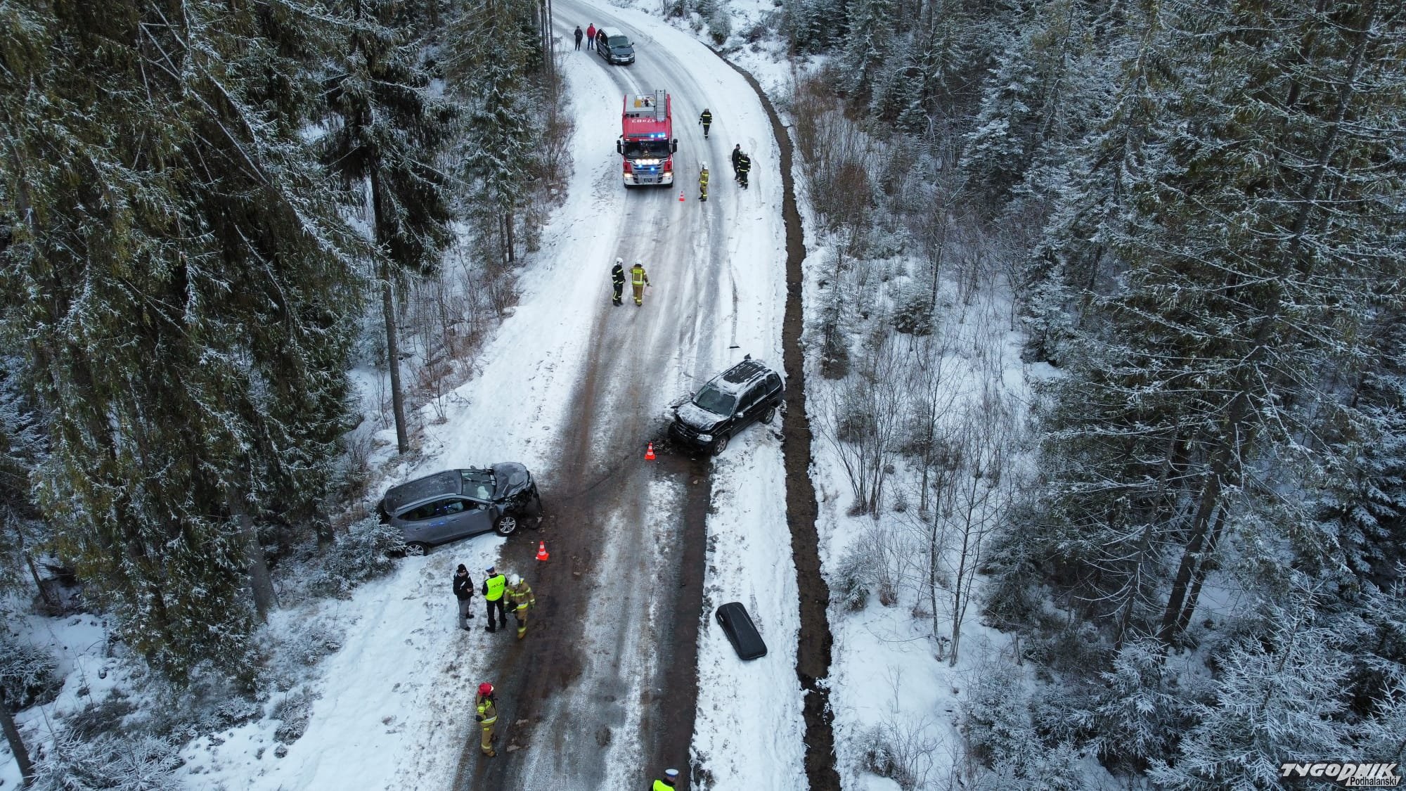 Wypadek w Małem Cichem. Uważajcie na śliskie drogi! (WIDEO)
