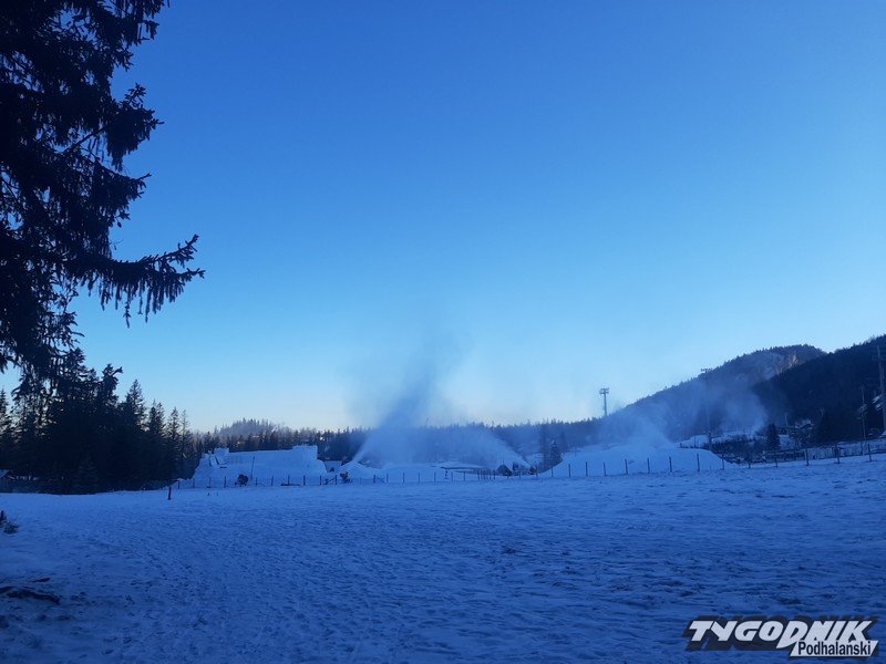 Pod Wielką Krokwią armatki śnieżne pracują pełną parą.