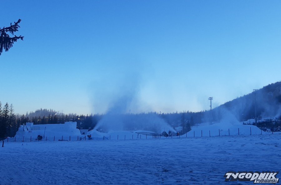 Mroźna pogoda sprzyja budowie śnieżnego zamczyska i wielkiego labiryntu, który powstaje nieopodal Wielkiej Krokwi. Roboty idą pełną parą, ekipy pracują nawet nocą. Tak żeby zdążyć z uruchomieniem atrakcji na ferie. Póki co, armatki śnieżne non stop dostarczają świeżego budulca.