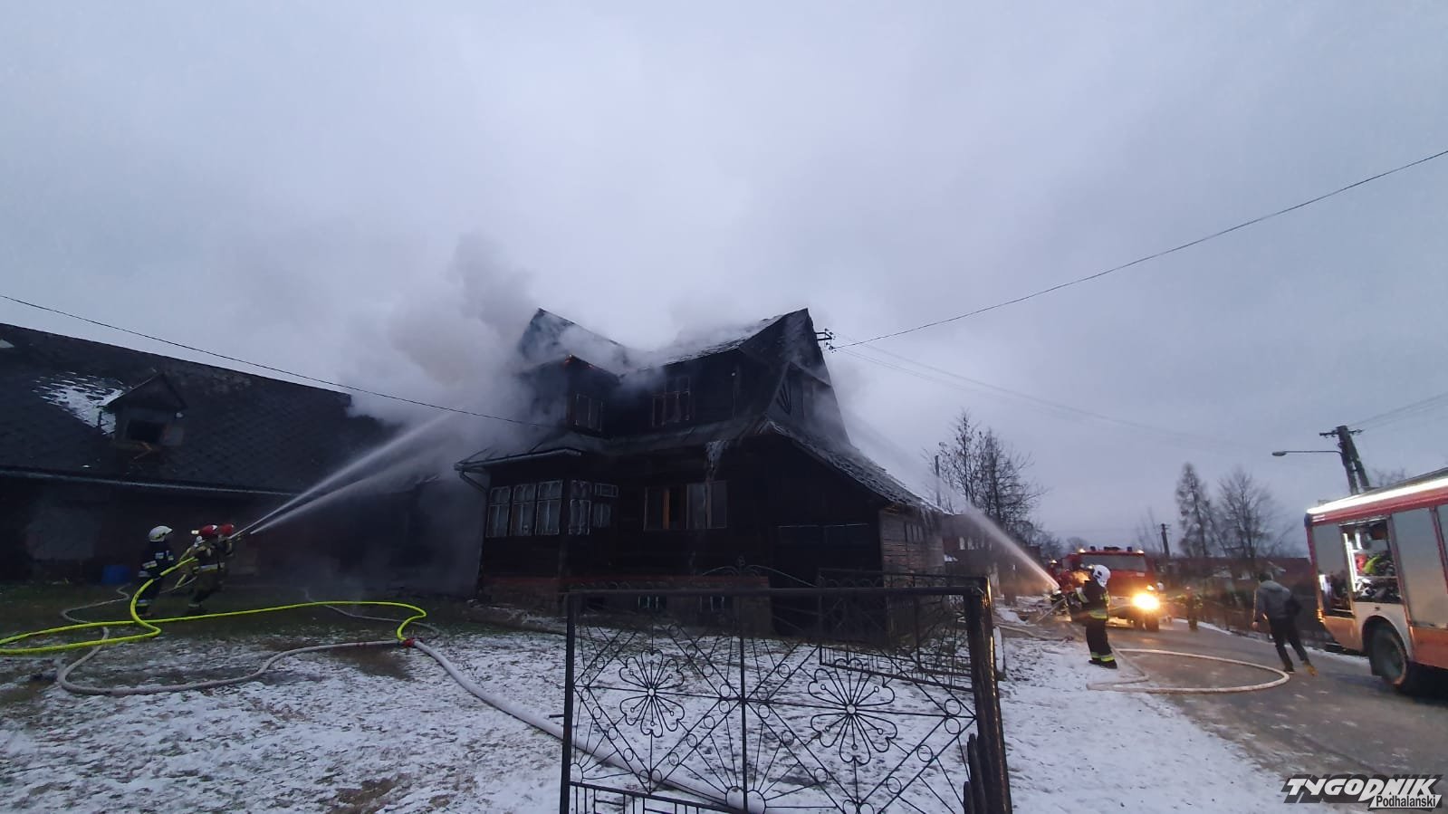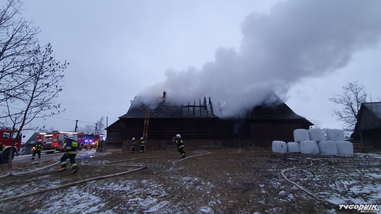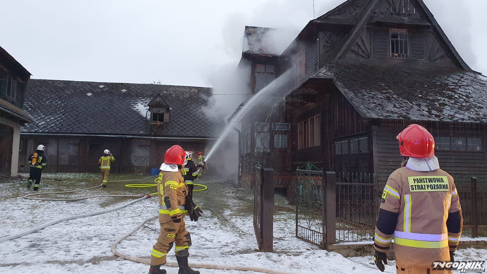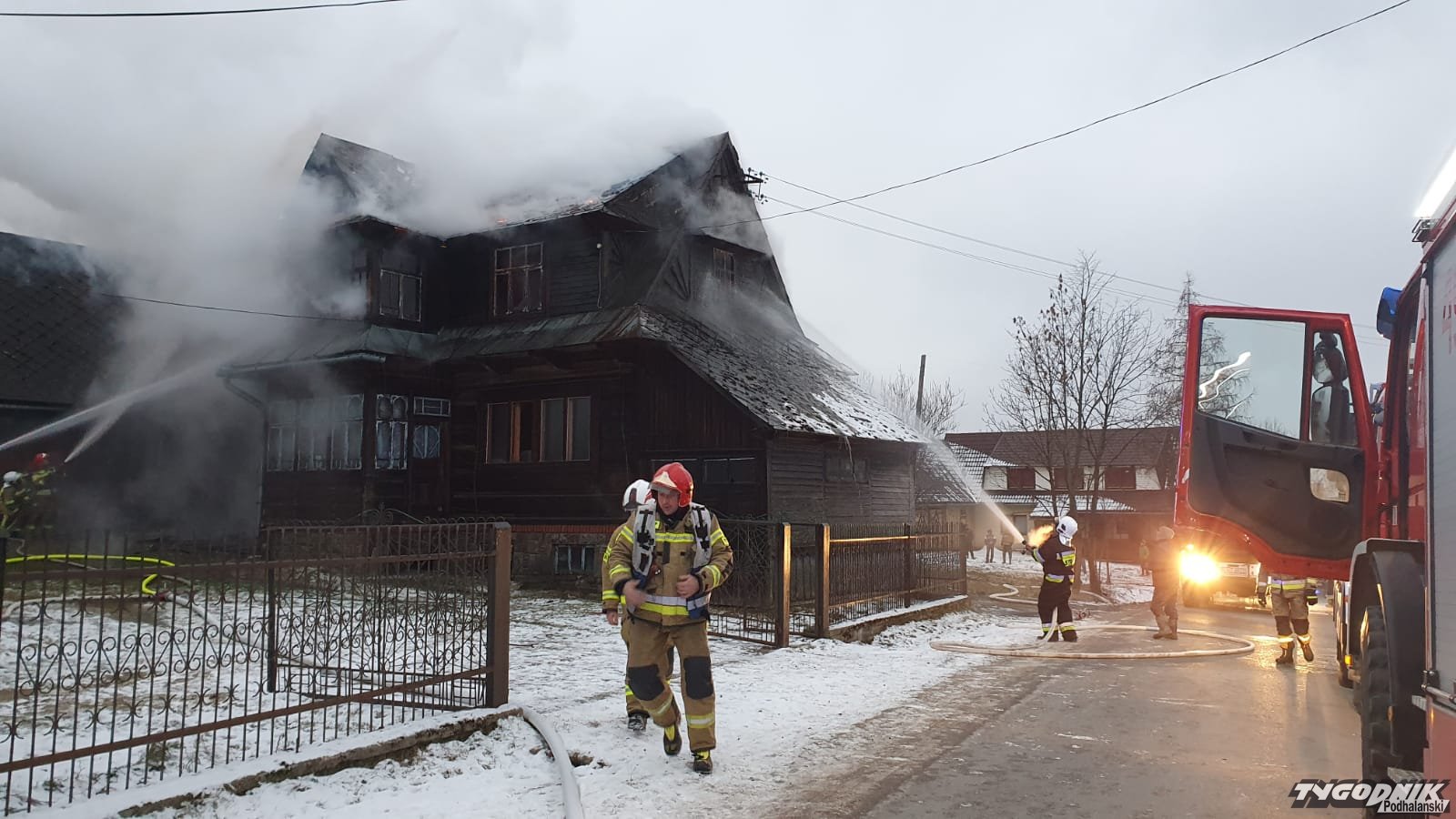 Pożar wybuchł około 7 w jednym z gospodarstw w Czerwiennem. W budynku mieszkała jedna osoba. Zdołała się wydostać z płonącego budynku. Na miejsce wyruszyło kilkanaście strażackich zastępów z Nowego Targu, Czerwiennego i okolicznych jednostek Ochotniczych Straży Pożarnych. Płomienie zagrażają sąsiednim zabudowaniom. Akcja trwa. Na miejsce wciąż docierają nowej jednostki strażackie.