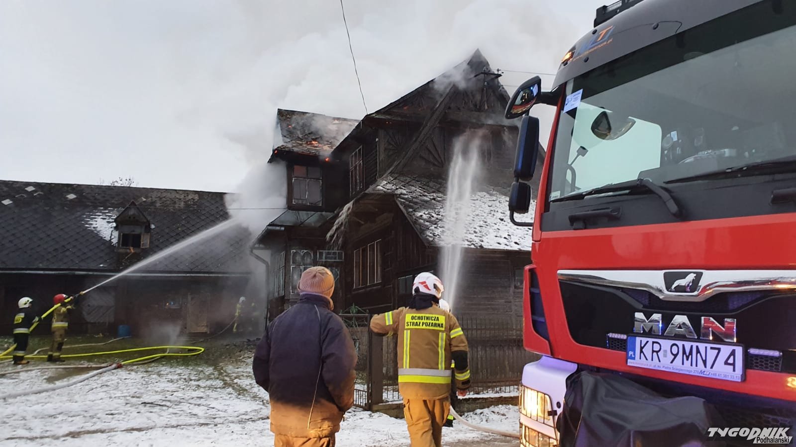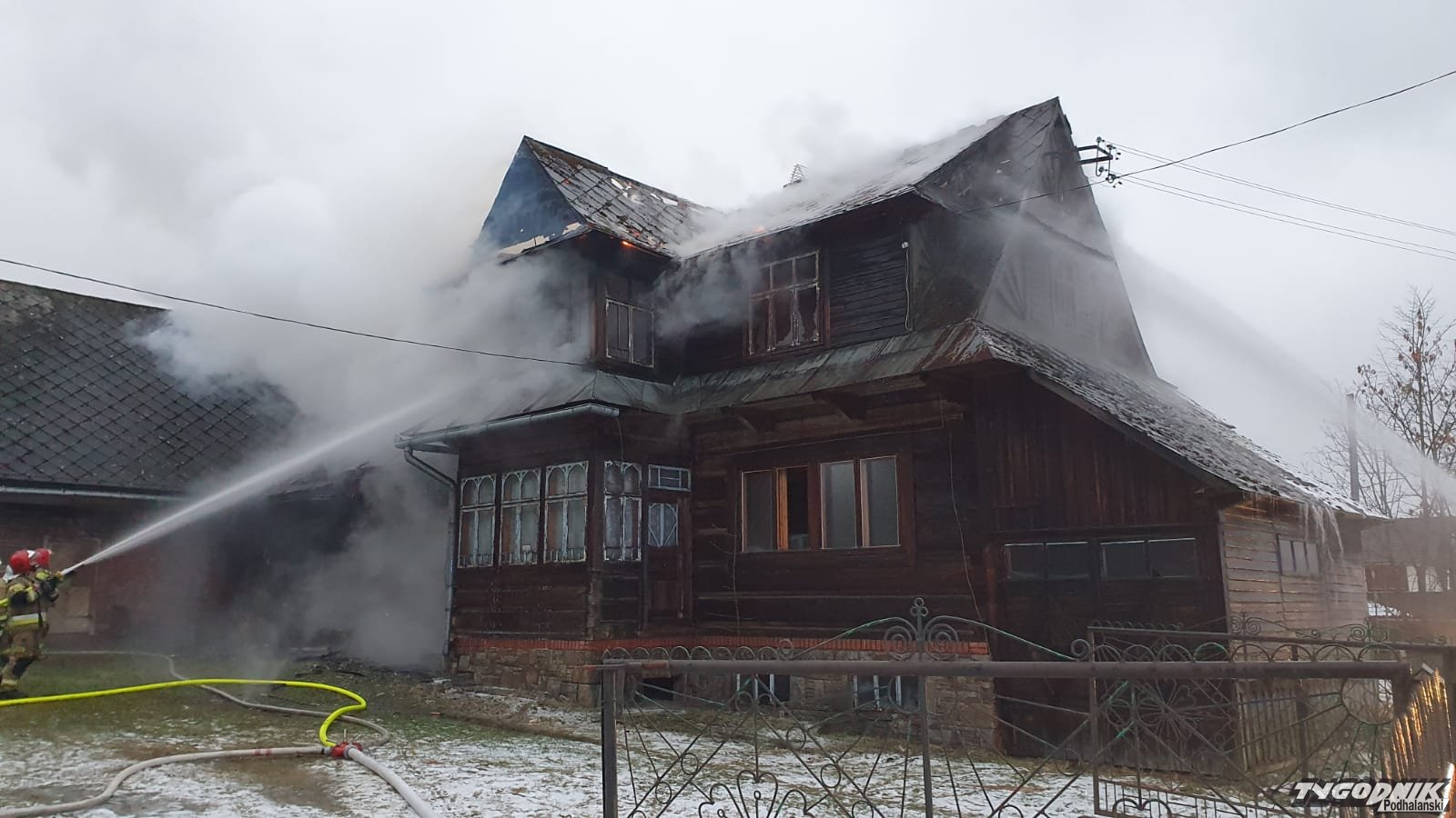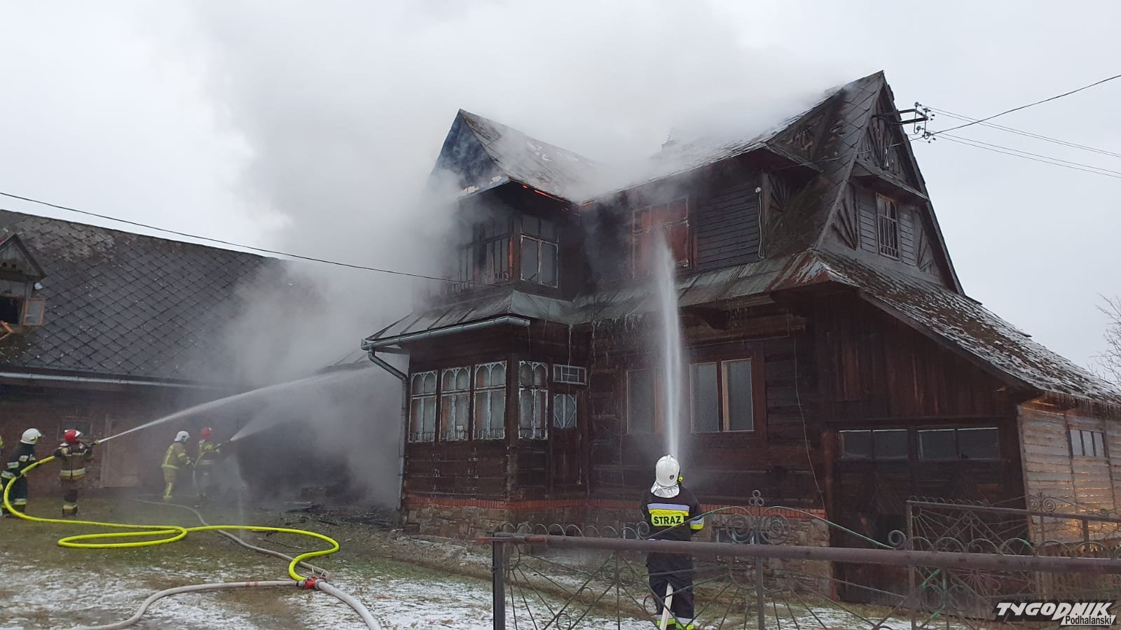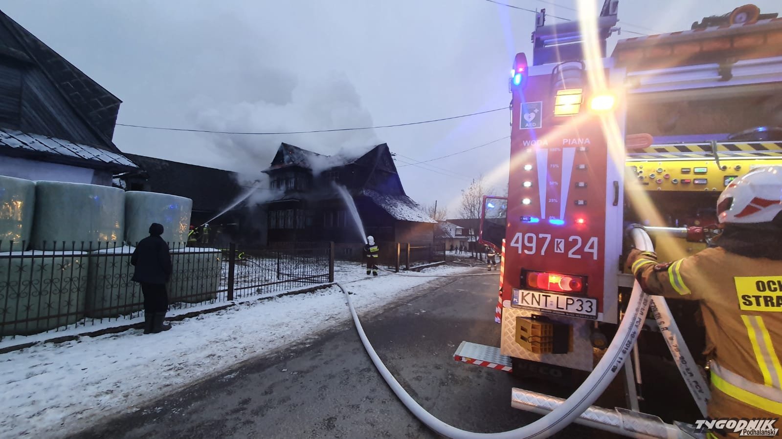 Pożar wybuchł około 7 w jednym z gospodarstw w Czerwiennem. W budynku mieszkała jedna osoba. Zdołała się wydostać z płonącego budynku. Na miejsce wyruszyło kilkanaście strażackich zastępów z Nowego Targu, Czerwiennego i okolicznych jednostek Ochotniczych Straży Pożarnych. Płomienie zagrażają sąsiednim zabudowaniom. Akcja trwa. Na miejsce wciąż docierają nowej jednostki strażackie.