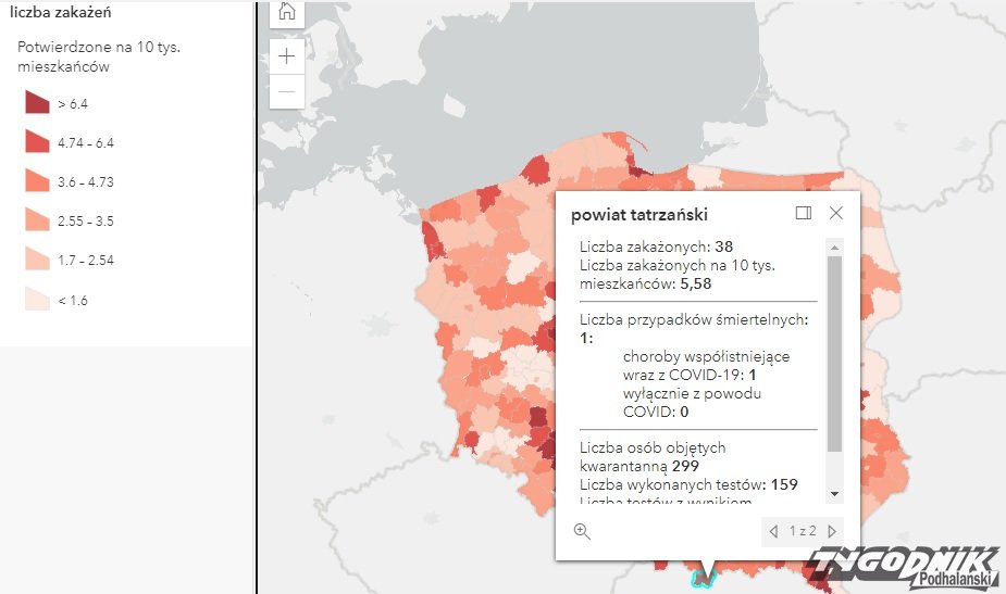 W powiecie tatrzańskim 38 zakażonych, w powiecie nowotarskim 78 zakażonych koronawirusem.