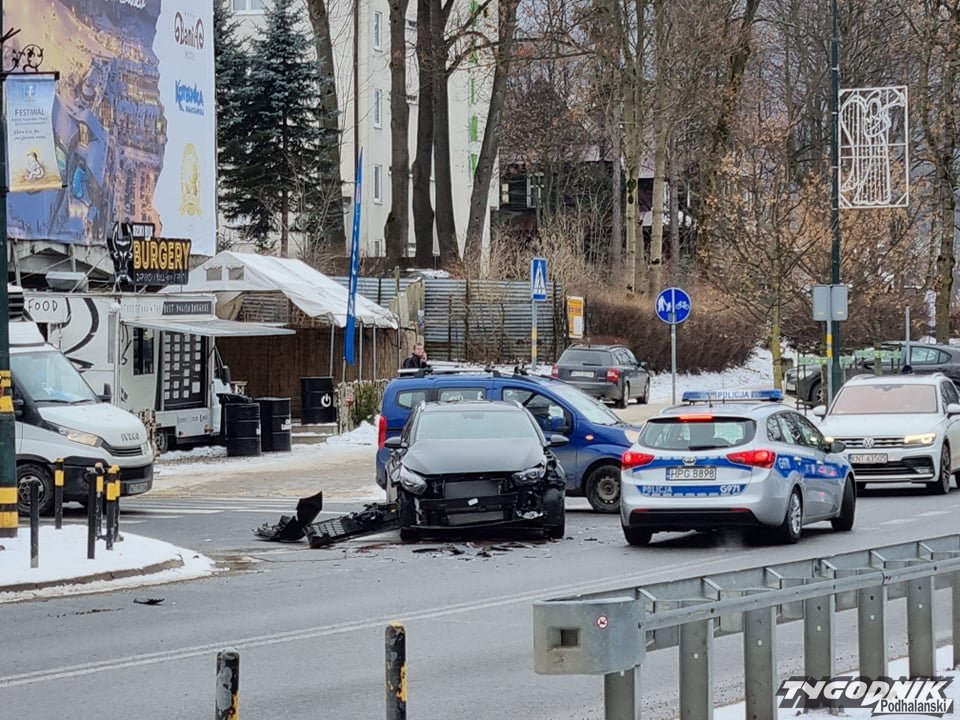 Na skrzyżowaniu ul. Kościuszki i Sienkiewicza w Zakopanem doszło do zderzenia.