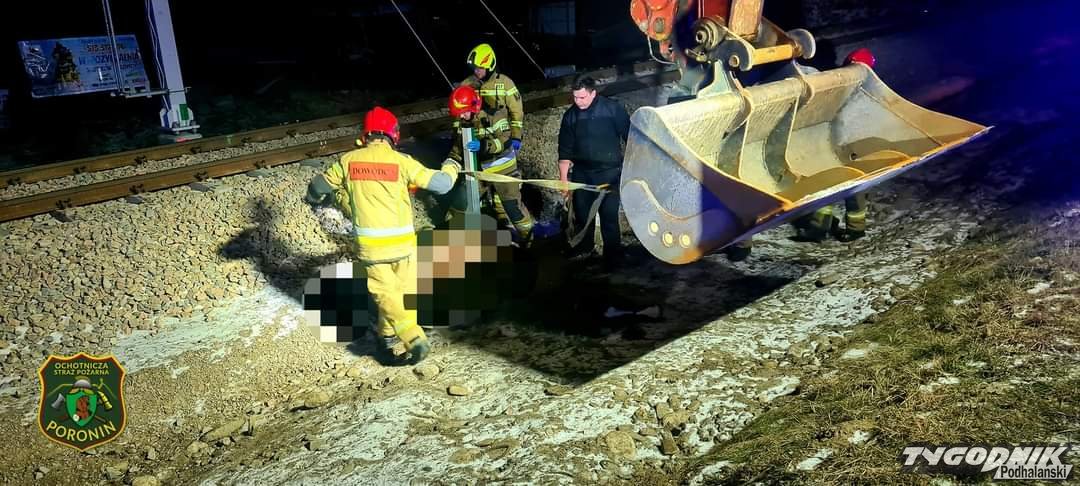 - Potrącony koń leży przy torach w Poroninie - informuje jeden z naszych czytelników. Do groźnie wyglądającego zdarzenia doszło na węźle tatrzańskim. Na miejscu są dwa zastępy straży pożarnej, Straż Ochrony Kolei i policja, która wyjaśnia jak doszło do wypadku.