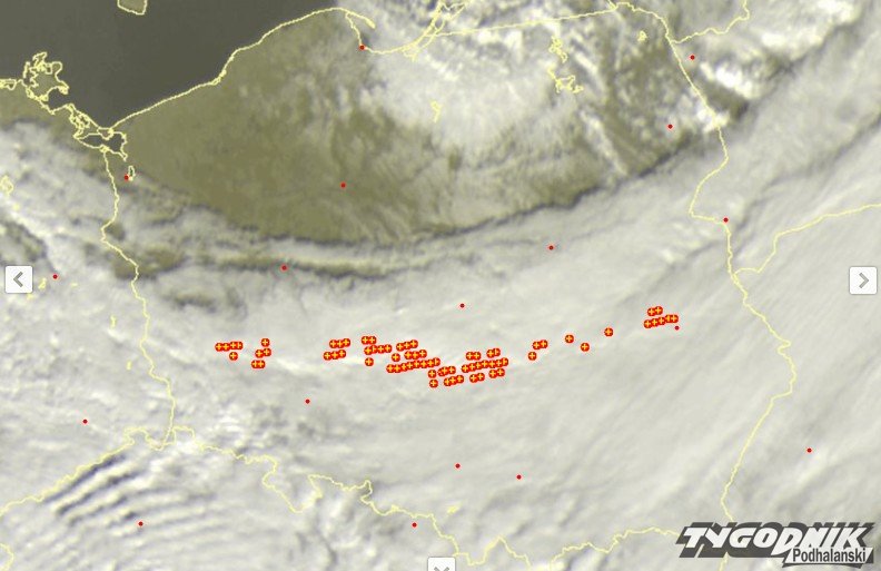 Z północy na południe przez Polskę przesuwa się z dużą prędkością linia szkwału. O godz. 12 jest na wysokości Łodzi, ale w ciągu niecałych dwóch godzin ma dotrzeć nad Podhale.
