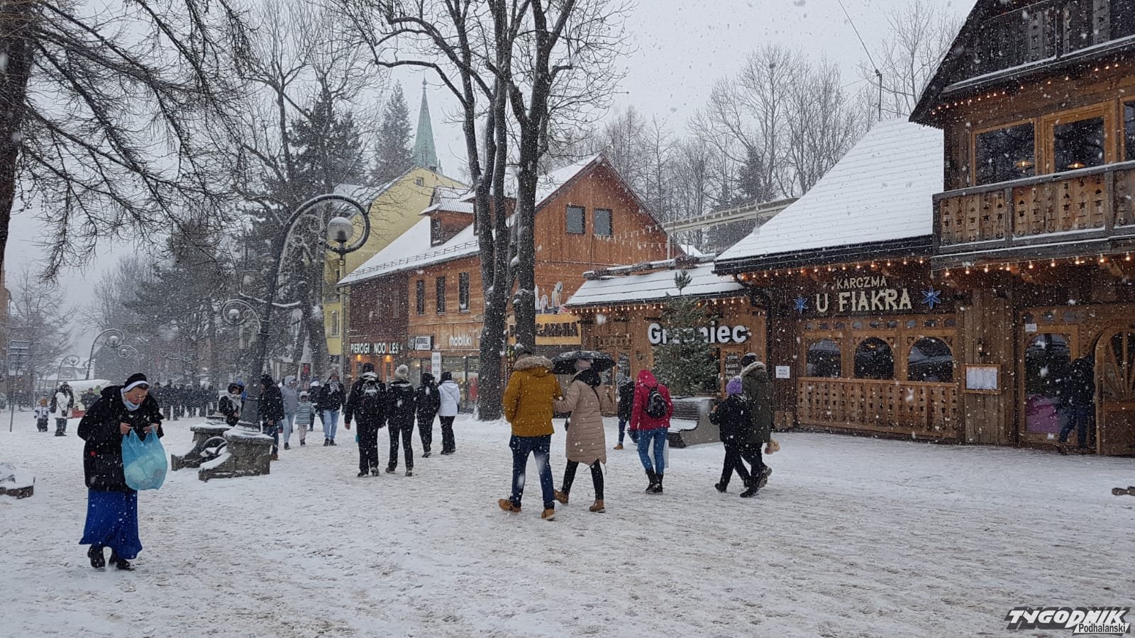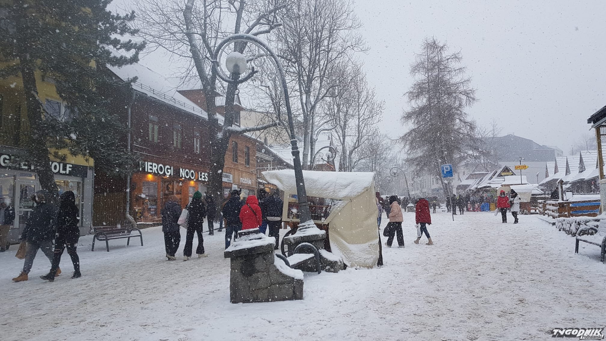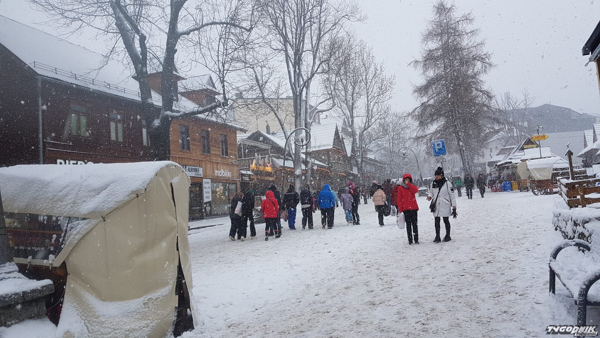 Krupówki już zasypane śniegiem, a burze dopiero nadciągają (ZDJĘCIA, WIDEO)