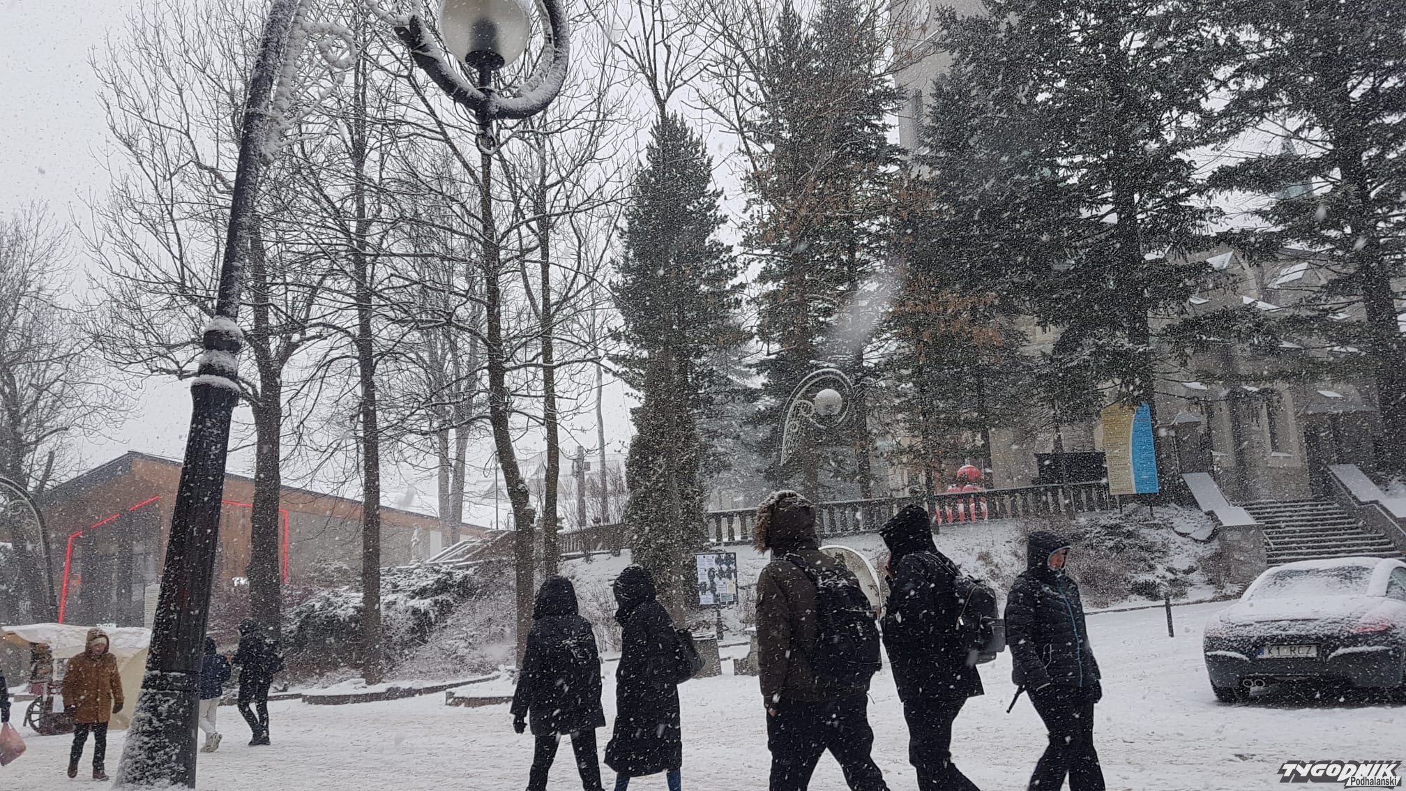 O godz. 13:30 burze śnieżne dotarły do Krakowa i przemieszczają się na południe. Krupówki już pod śniegiem.