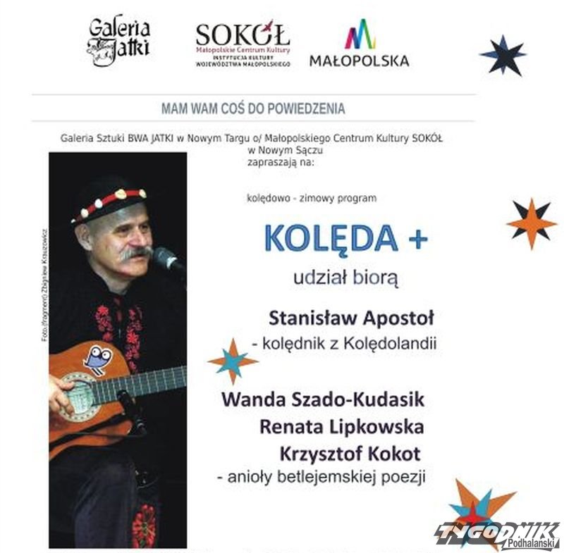 Nadto, już w piątek 28.01 odbędzie się tu też kolejne spotkanie z cyklu "Mam Wam coś do powiedzenia". W kolędowo-zimowym programie "Kolęda +" zaprezentuje się kolędnik z Kolędolandii Stanisław Apostoł oraz anioły betlejemskiej poezji, czyli Wanda Szado-Kudasik, Renata Lipkowska i Krzysztof Kokot. Początek - godzina 18.