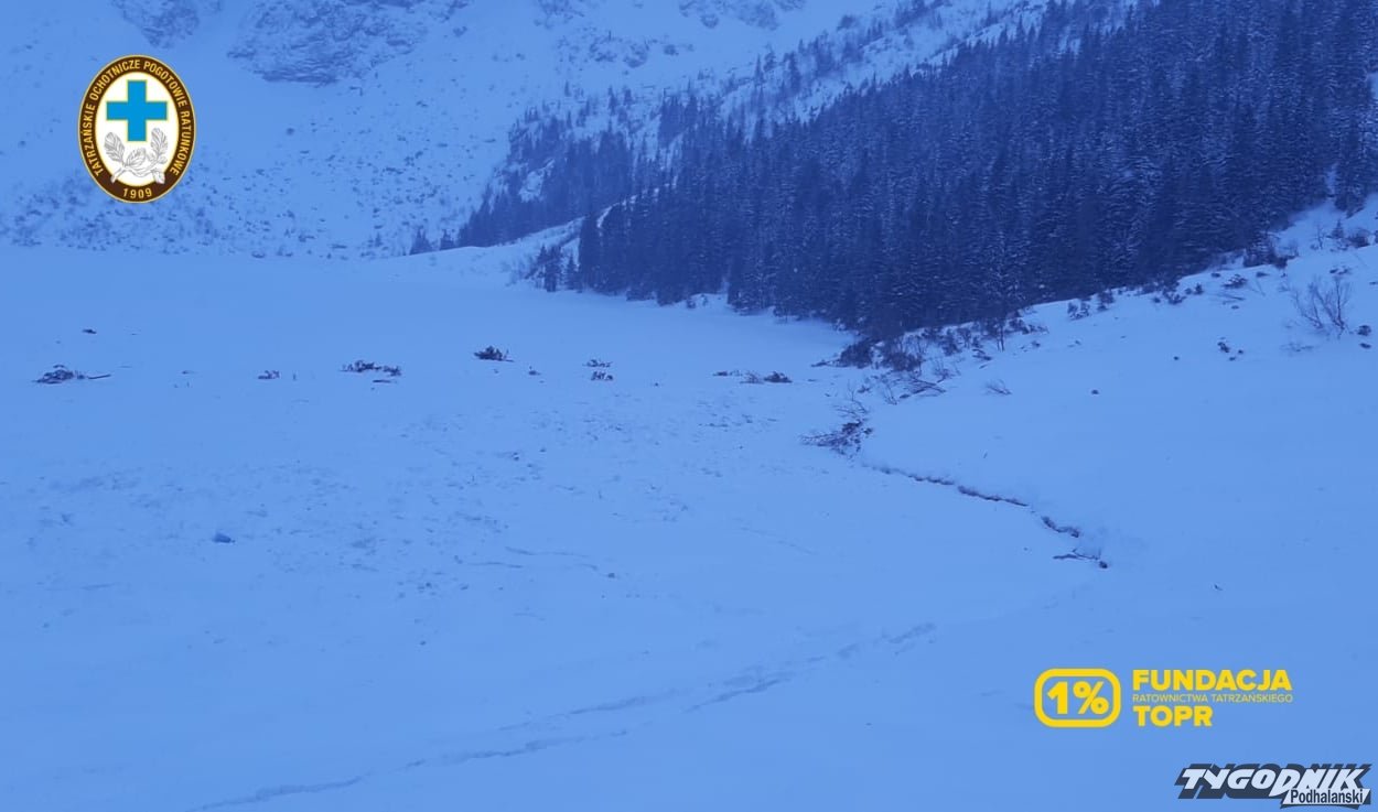 Potężna lawina zeszła z Marchwicznego Żlebu nad Morskim Okiem. Na stawie wyłamała lód grubości pół metra,