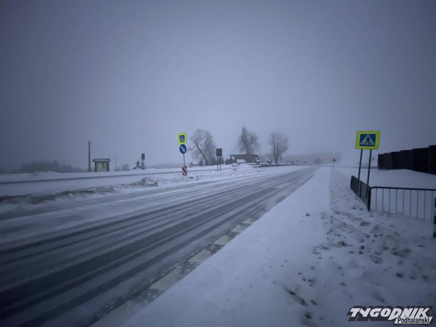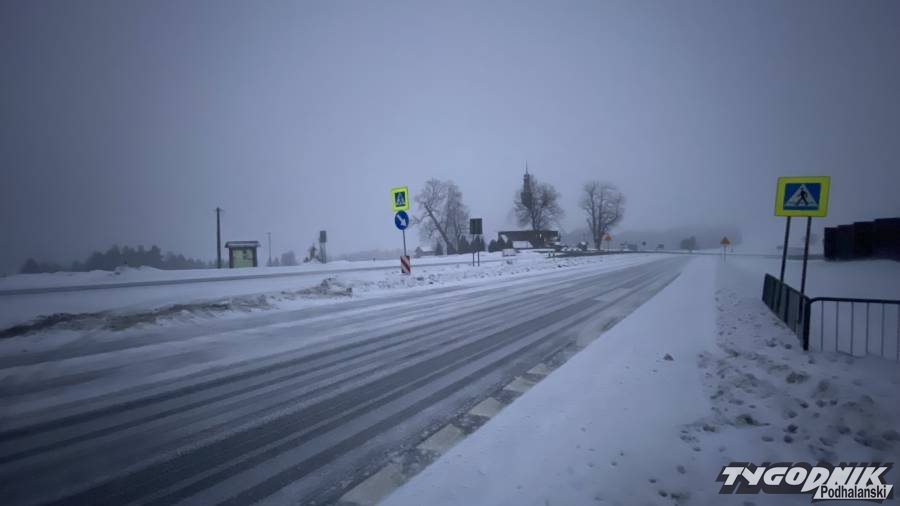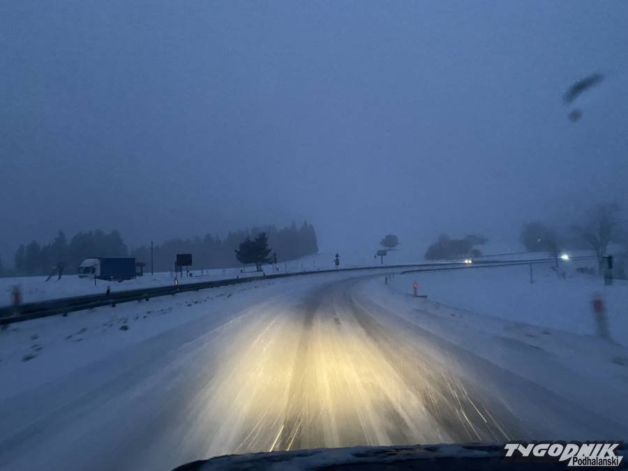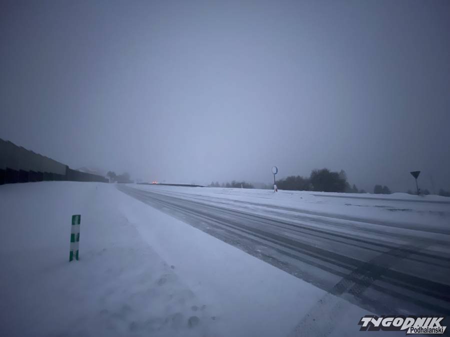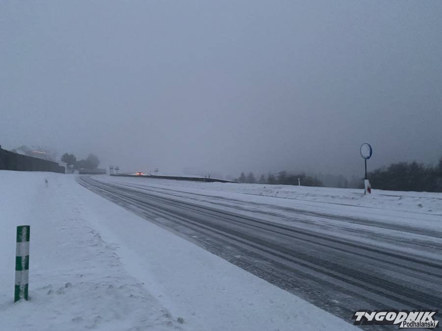 Wystarczyła trwająca kilkadziesiąt minut śnieżyca, by główna droga Podhala stała się całkowicie biała. Szczególnie trudny jest przejazd górską częścią drogi krajowej miedzy Nowym Targiem a Rabką.