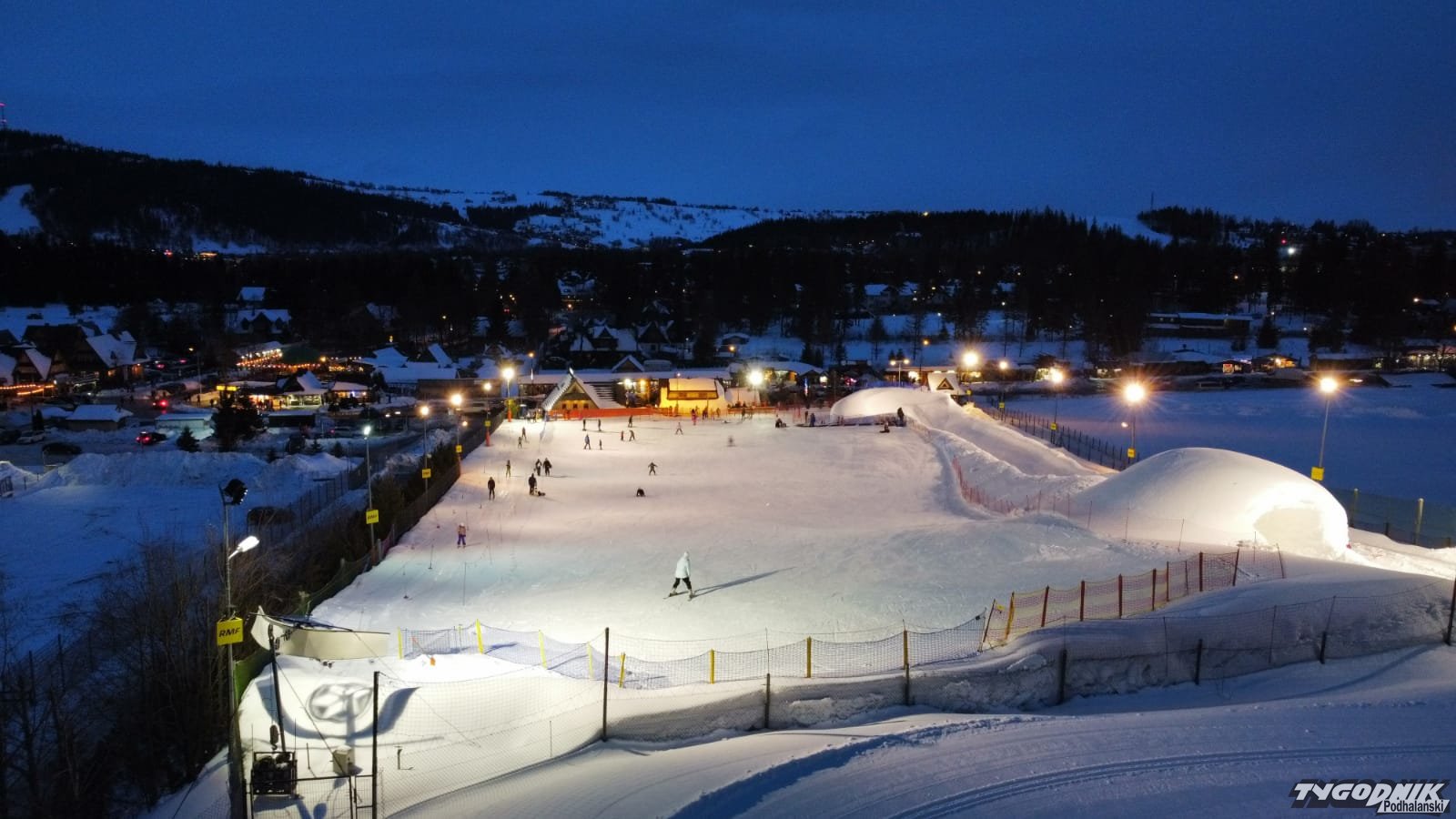 To nie tylko frajda dla turystów, ale i mieszkańców którzy dla zdrowia jeszcze po pracy, gdy już ciemno mogą wybrać się na stok. Tu pod Wielką Krokwią na Gigancie można pojeździć do późna. To jest to miejsce, gdzie od rana do wieczora dzieci w specjalnej śnieżnej rynnie szaleją też na pontonach.